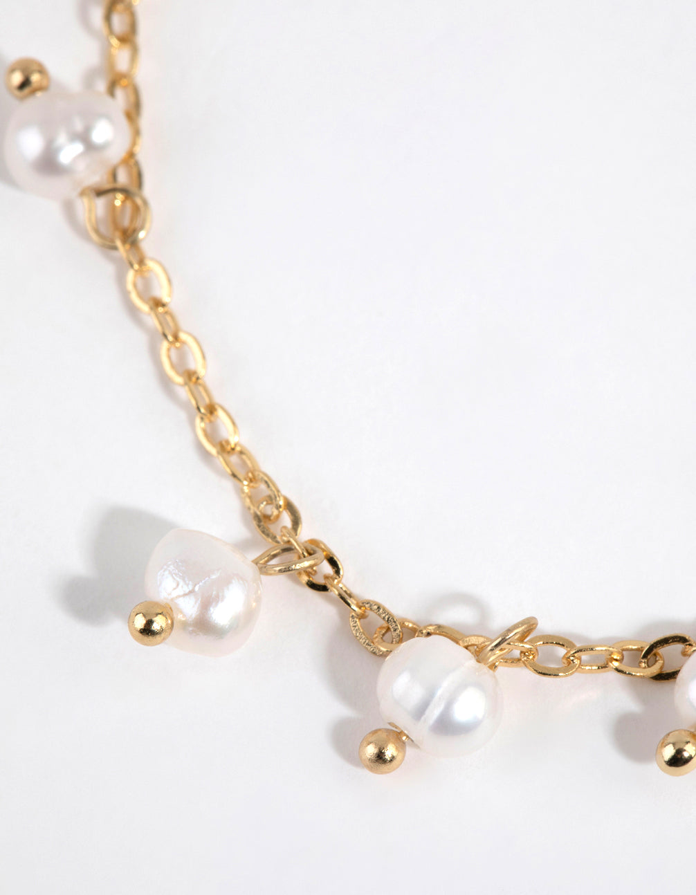 Gold Plated Freshwater Pearl Droplet Charm Bracelet