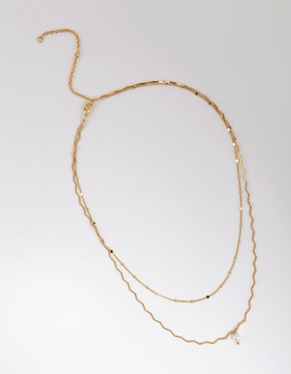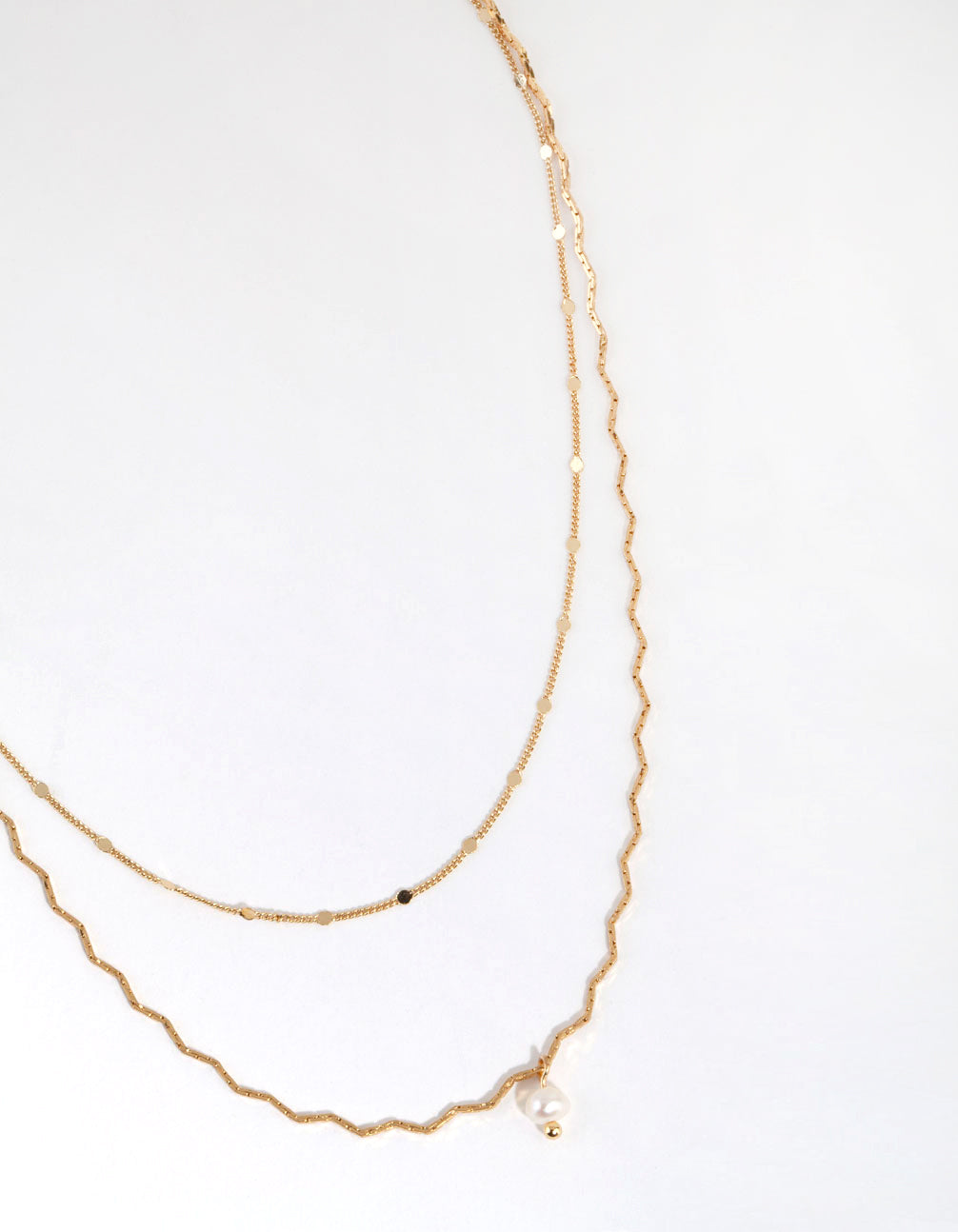 Gold Plated Wave Chain & Freshwater Pearl Layered Necklace