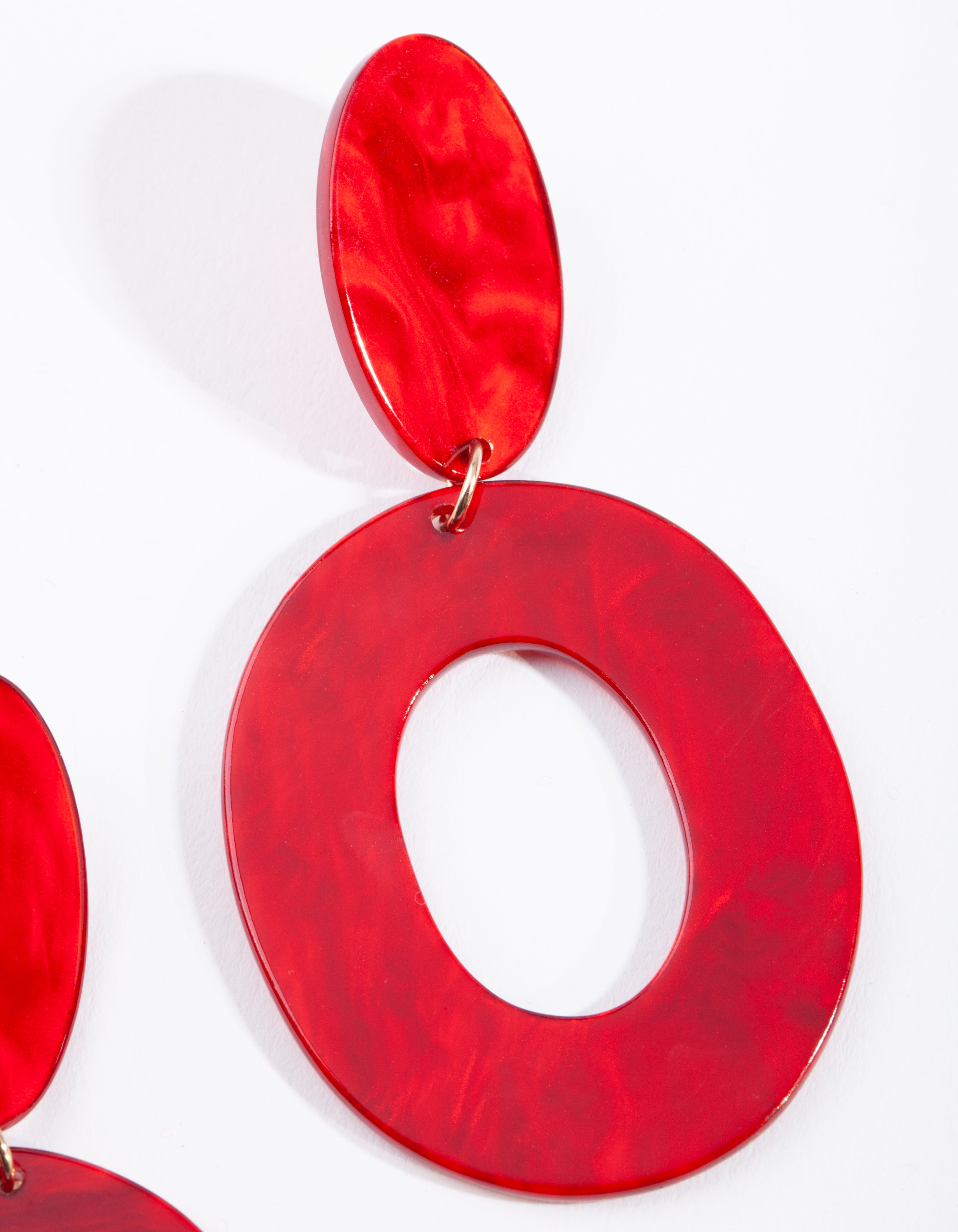 Enhance your everyday look with this Red acrylic oval cut out earring