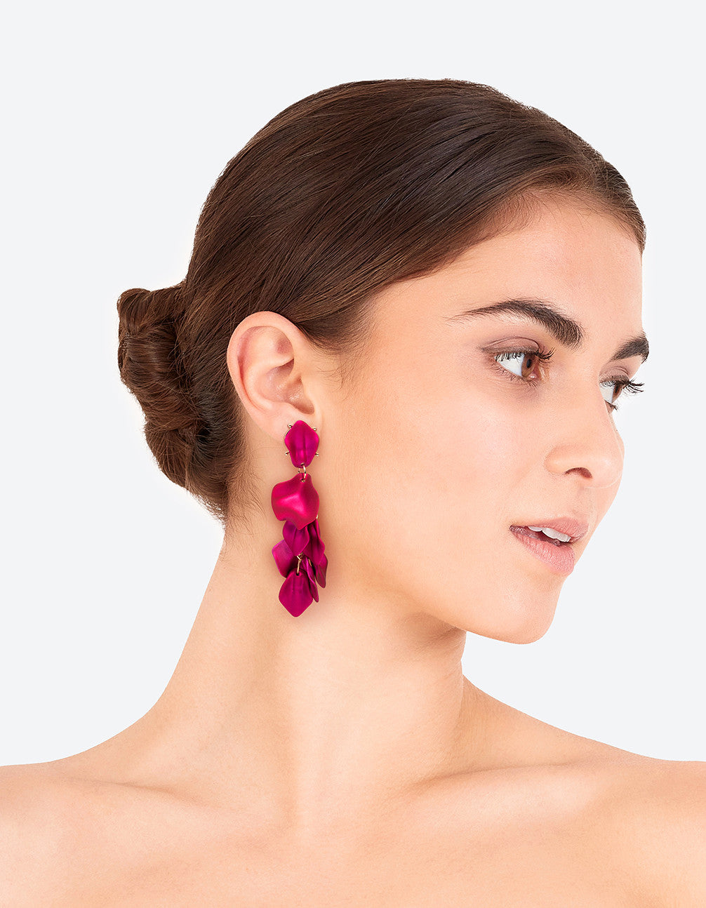 Give your outfit a romantic finishing touch with luscious pinks and vivid reds. These bold earrings feature a gorgeous design that boasts a fierce fuchsia hue. Wear them for a pop of colour!