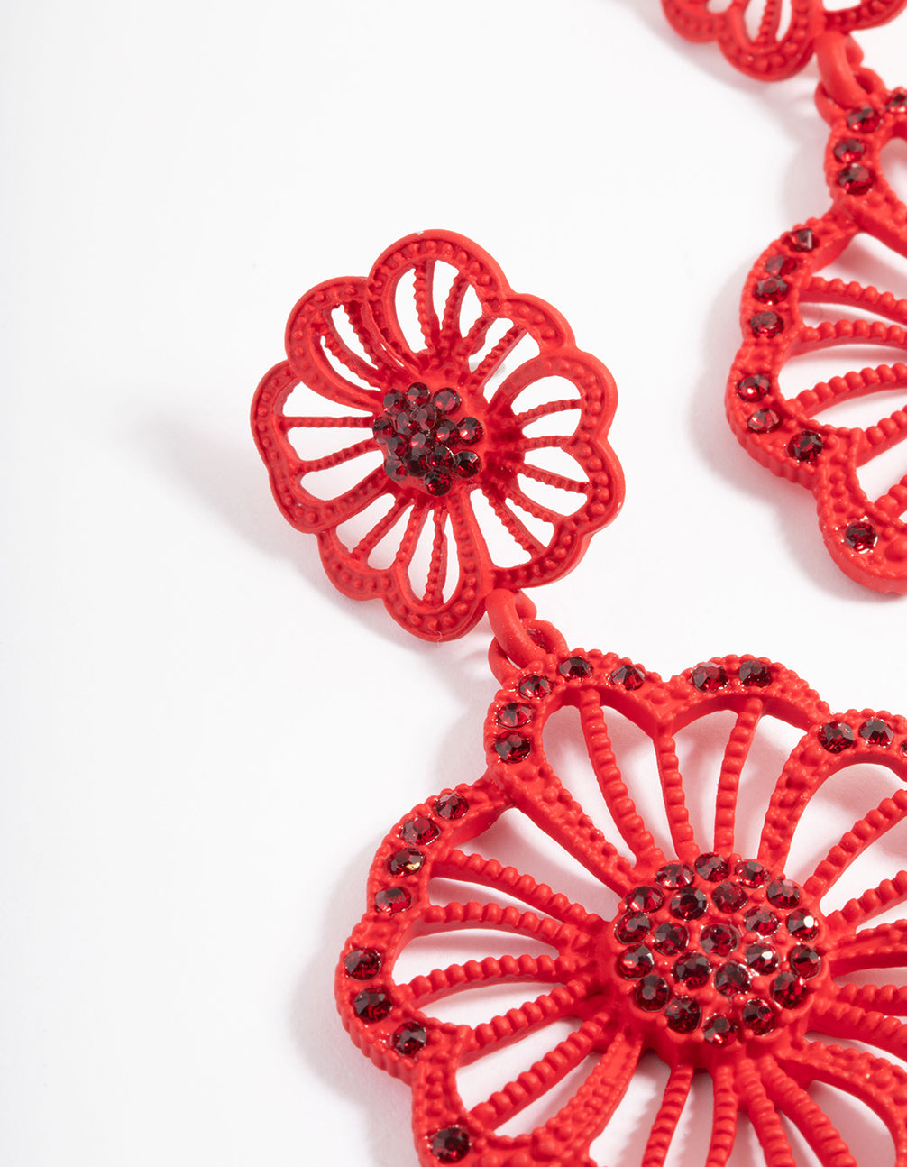 Red Diamante Flower Drop Earrings