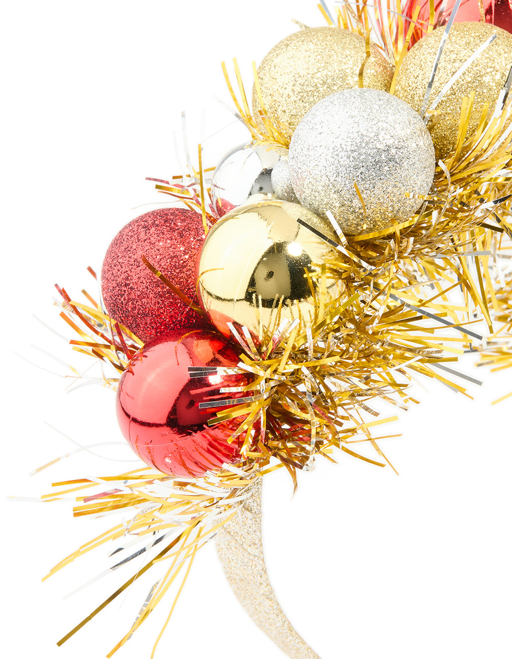 Get ready to shine with this Red & Gold Bauble Tinsel Headband, the ultimate festive accessory for adding a playful twist to your look. Featuring vibrant red and gold baubles nestled among shimmering tinsel, this headband is perfect for parties, celebrations, or any occasion that calls for a touch of seasonal style. Whether you're dressing up for a fun night out or accessorising a cosy jumper-and-jeans combo, this statement piece guarantees a cheerful vibe. Lightweight and easy to wear, it’s ideal for spreading festive joy without compromising on comfort. Pair it with bold colours or metallic accents to complete your standout style.