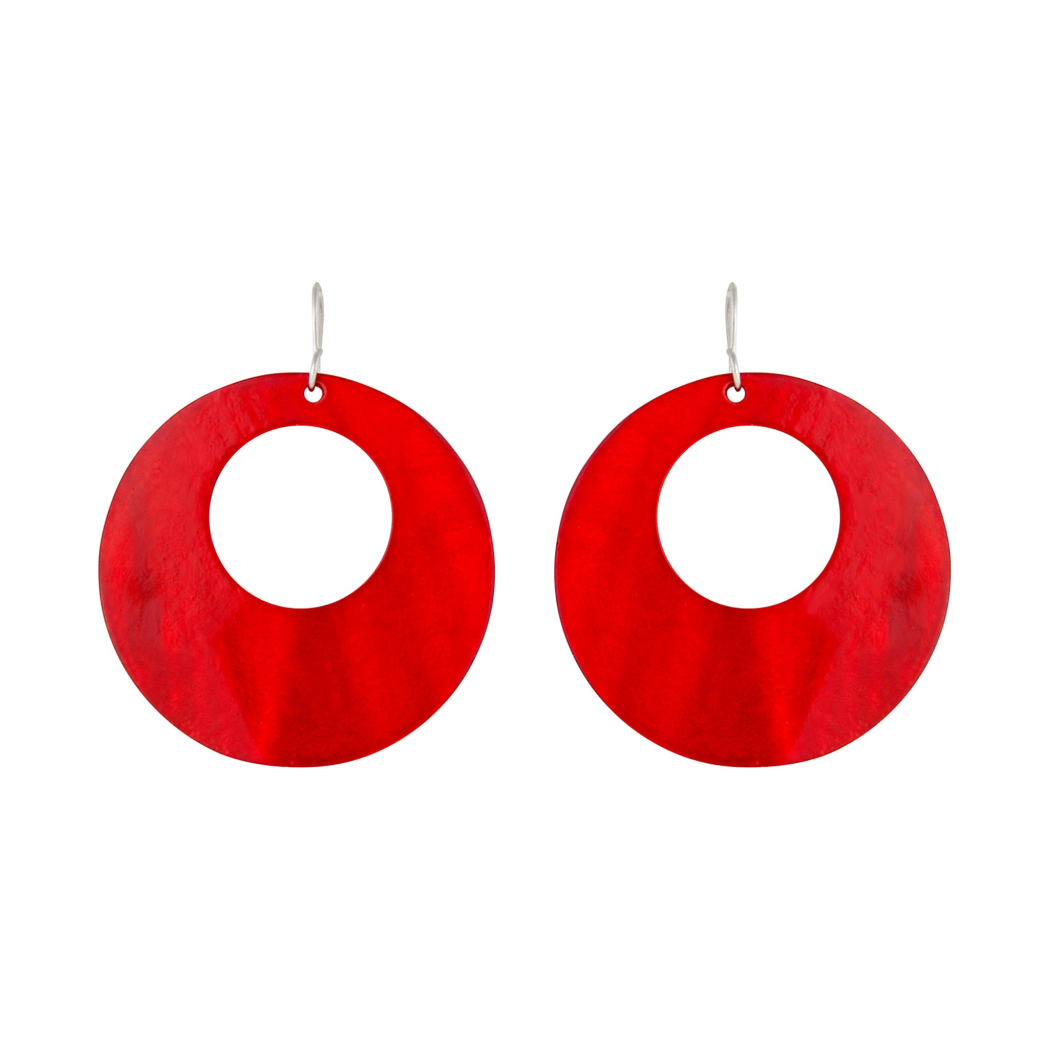 Red Round Polished Shell Earrings