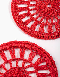 Red Crochet Disc Hoop Earrings