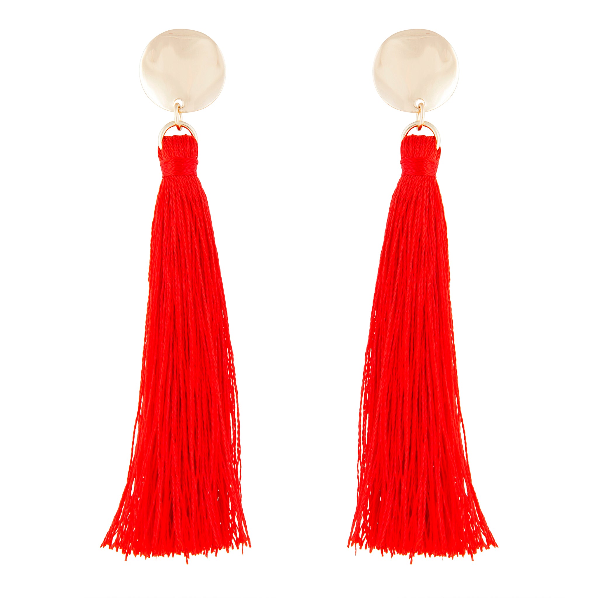 The tassel trend is here to stay and there is no better way to pay homage to the trend than with this vibrant red style.