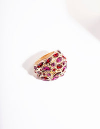 This gold-tone ring boasts a pink and red gem crater design. It's the perfect way to add some decoration to your fingers.