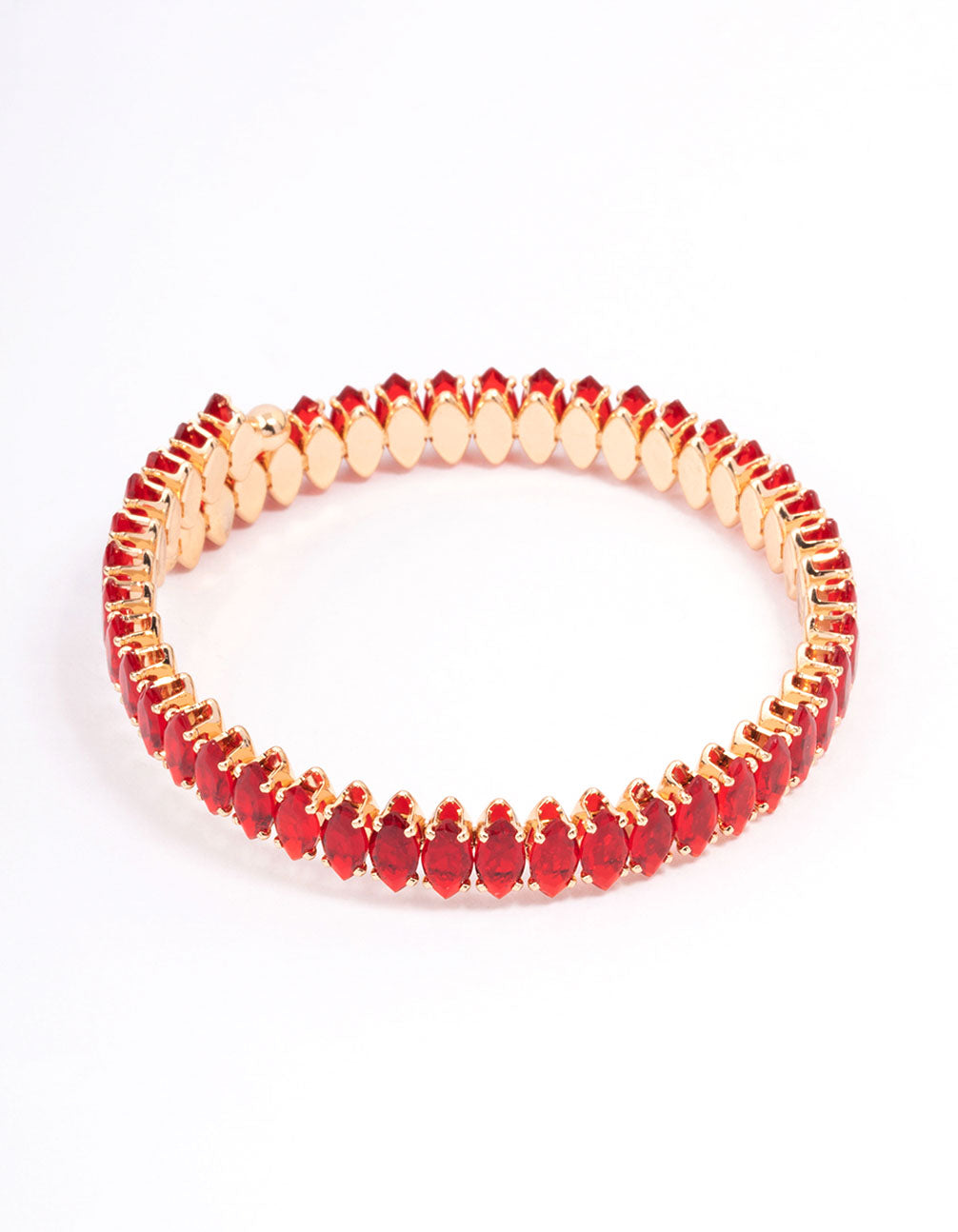 • Style this trending Red Navette Stone Bangle with a pair of ruby red drop earrings for a cohesive finish to your evening look.