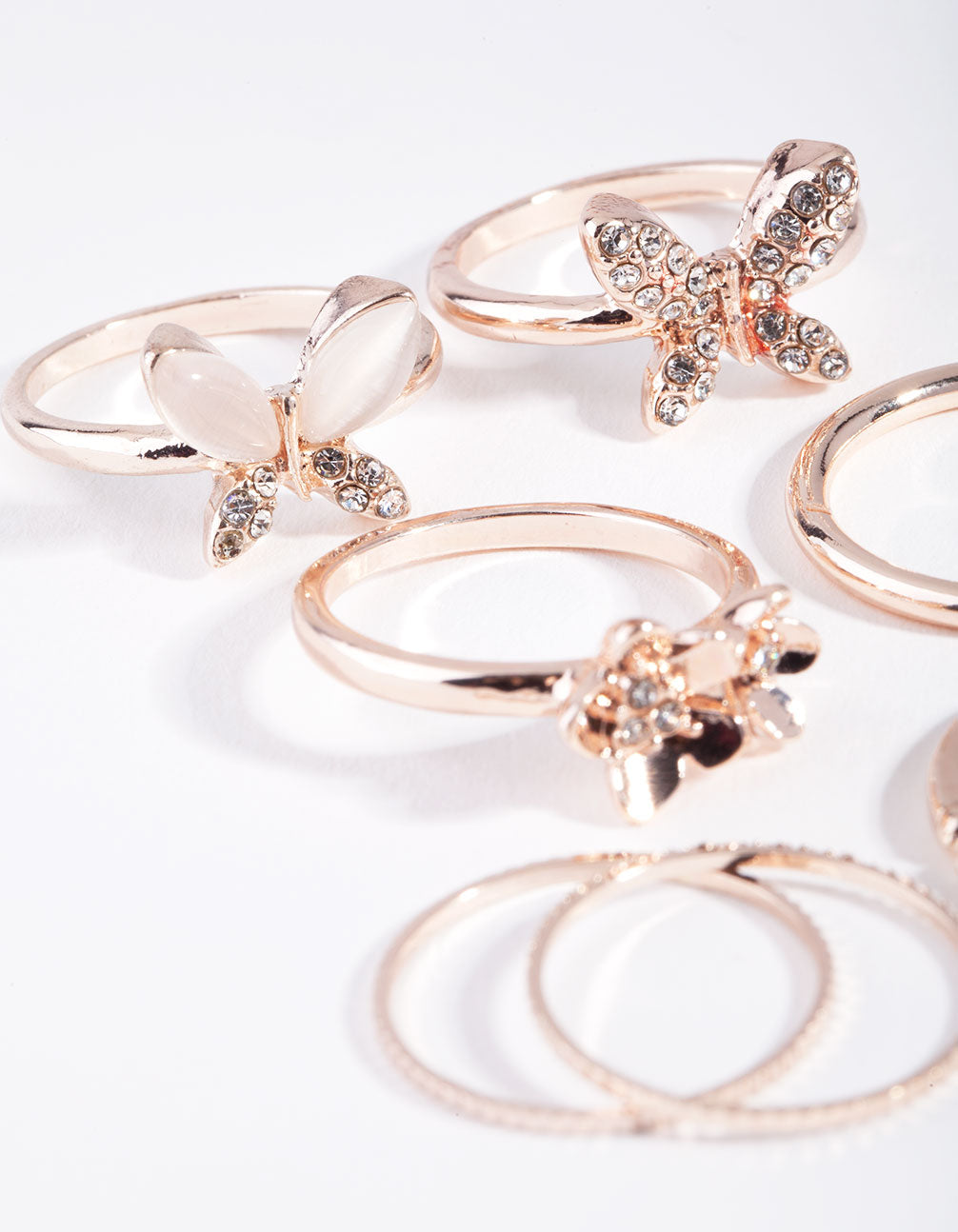 Rose Gold Butterfly & Flower 7-Pack Rings