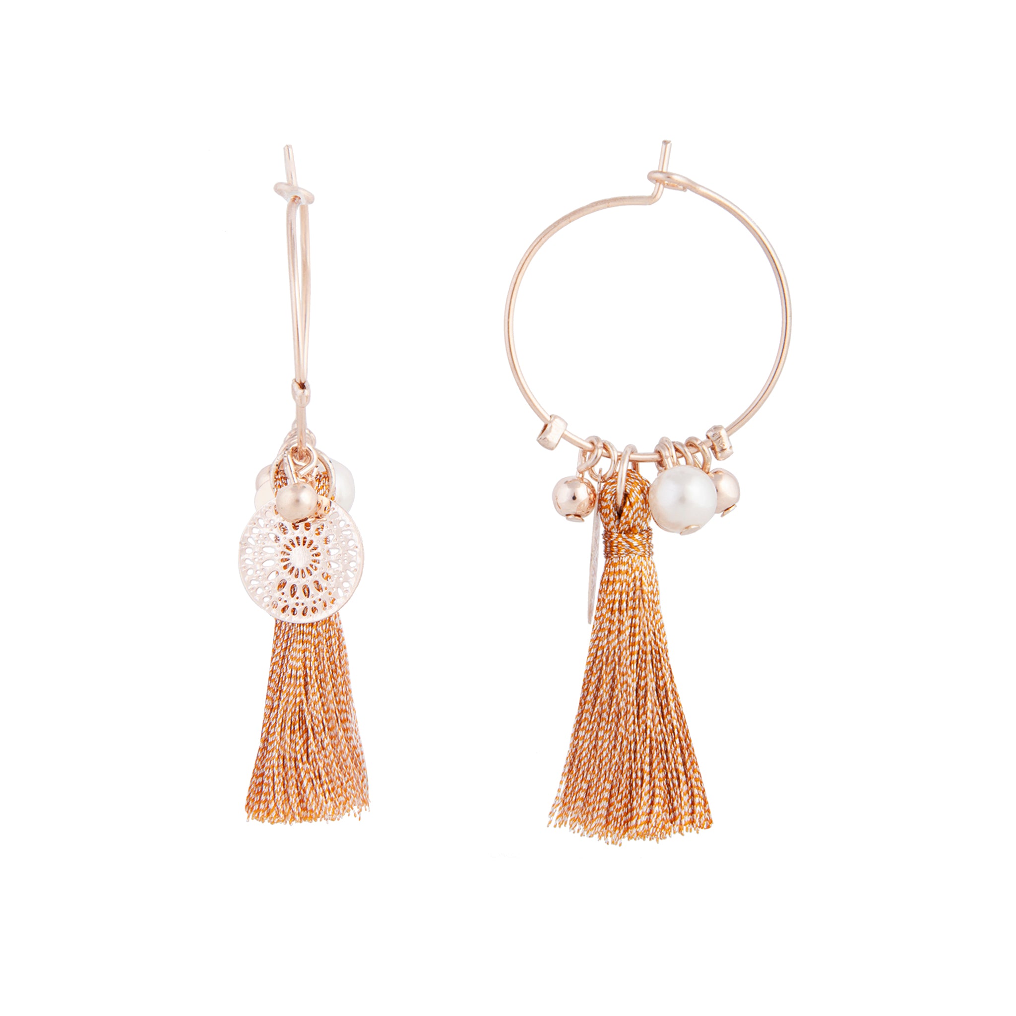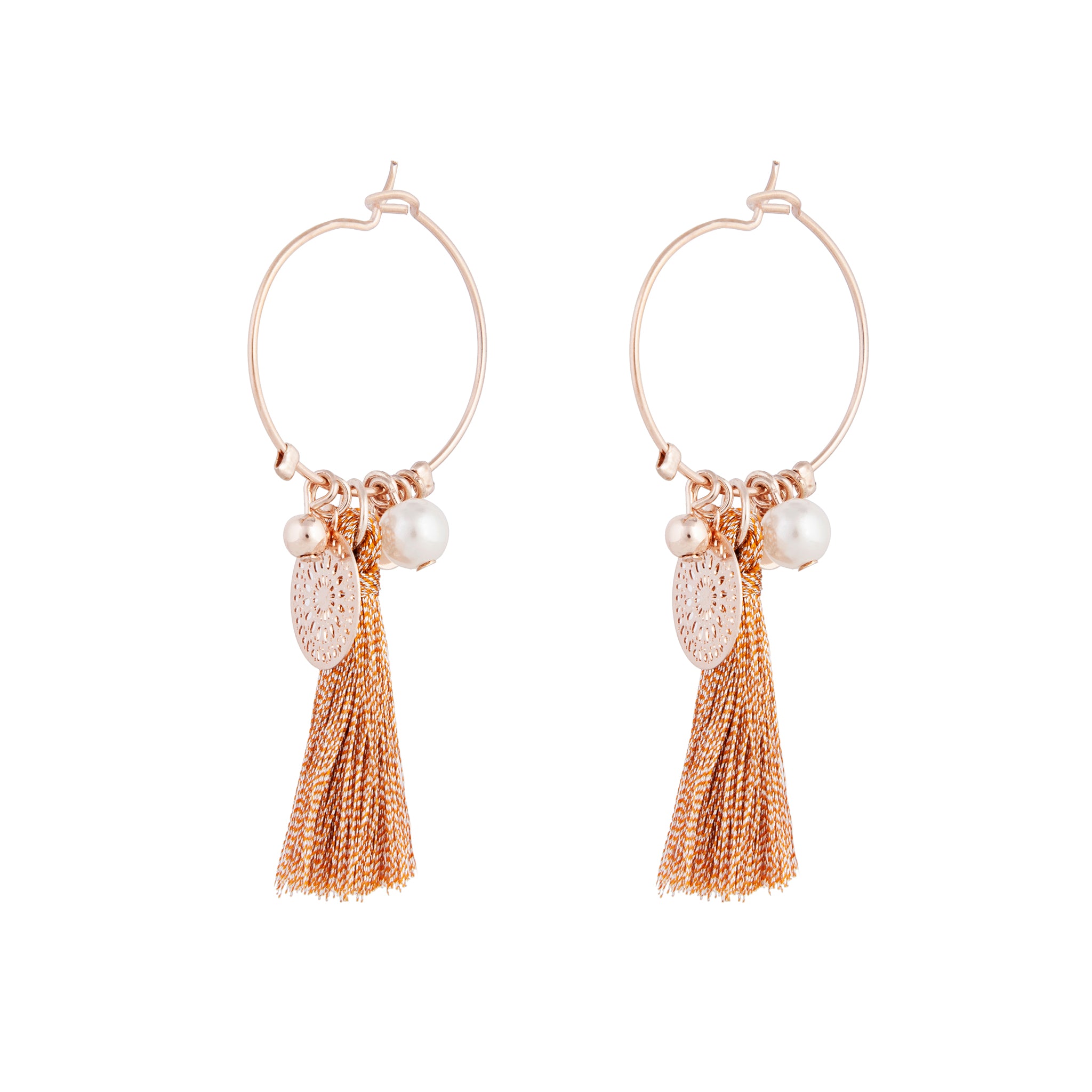 A pair of rose-gold-toned hoops decorated with a rose-gold-toned tassel, charm and beads.