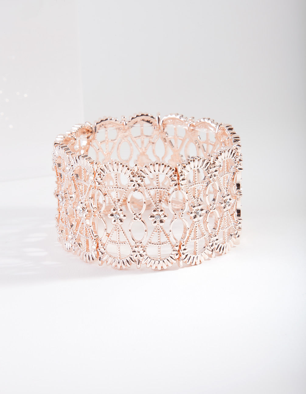 Classic rose-gold-toned styles make the perfect addition to your daily collection. This bracelet is perfect for formal occasions with its lace filigree design.