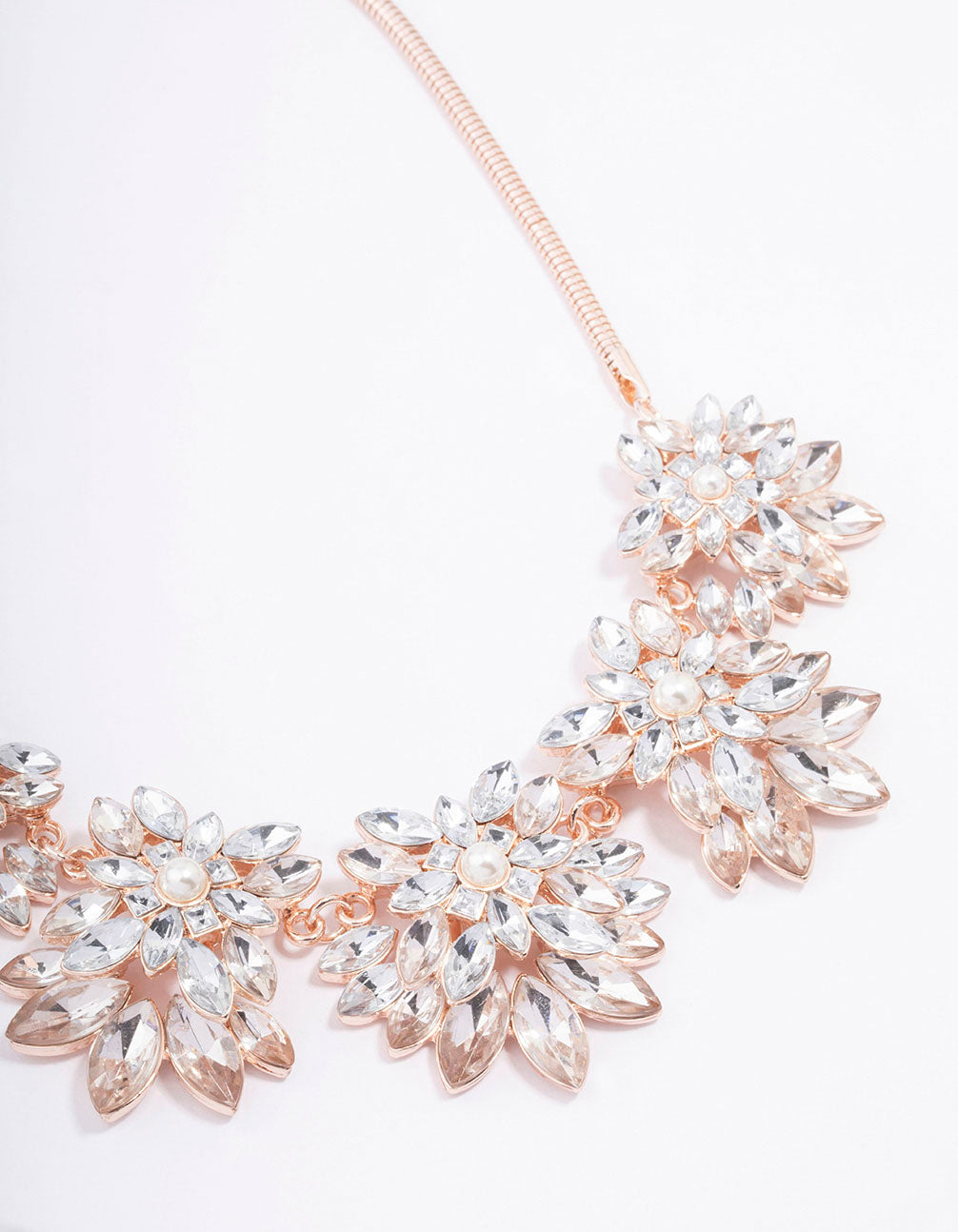 Rose Gold Marquise & Pearl Flower Statement Necklace