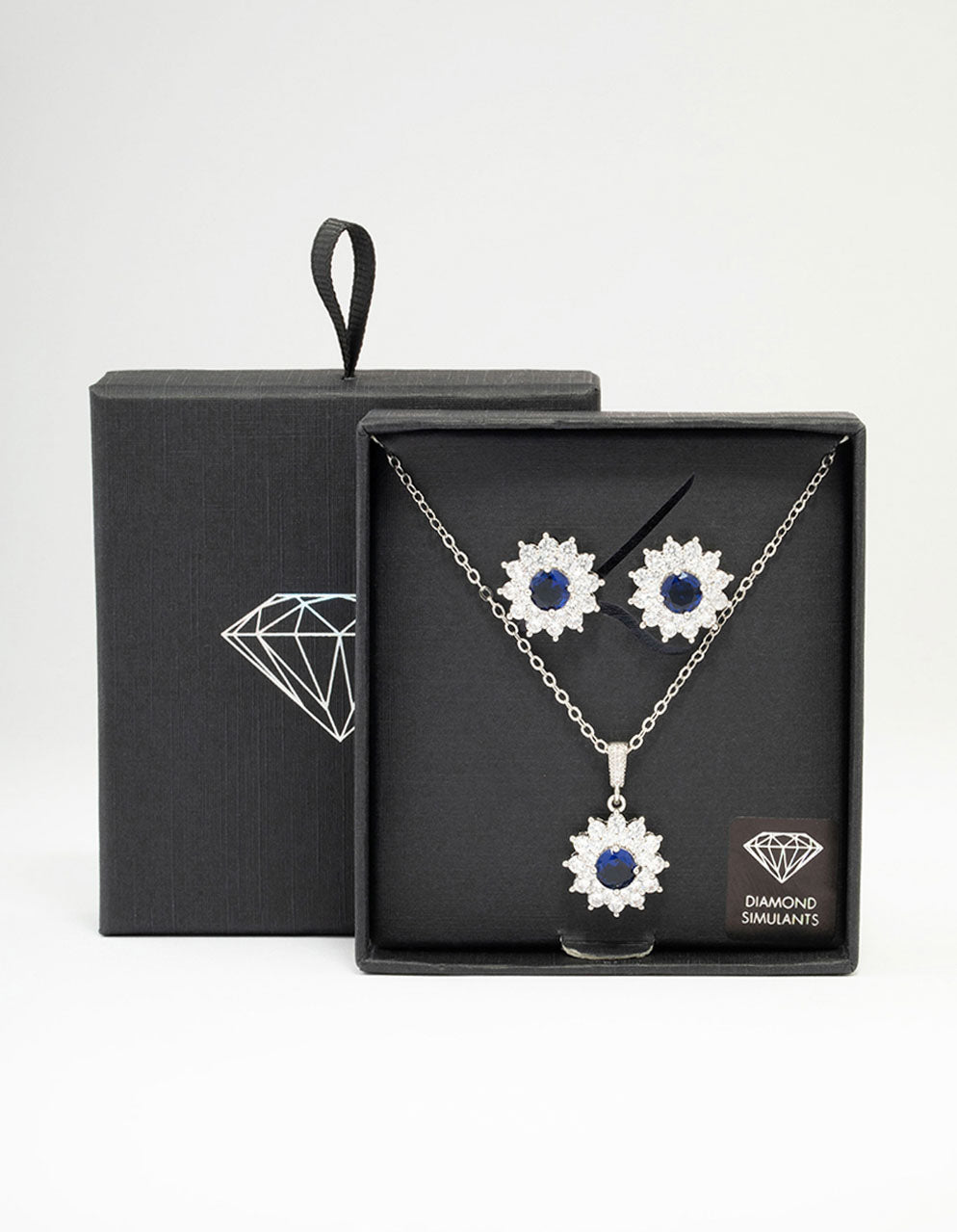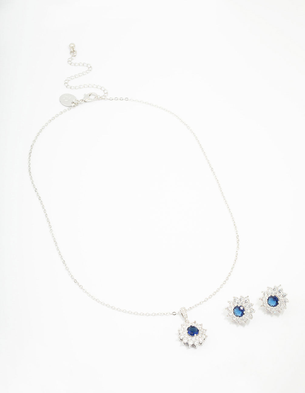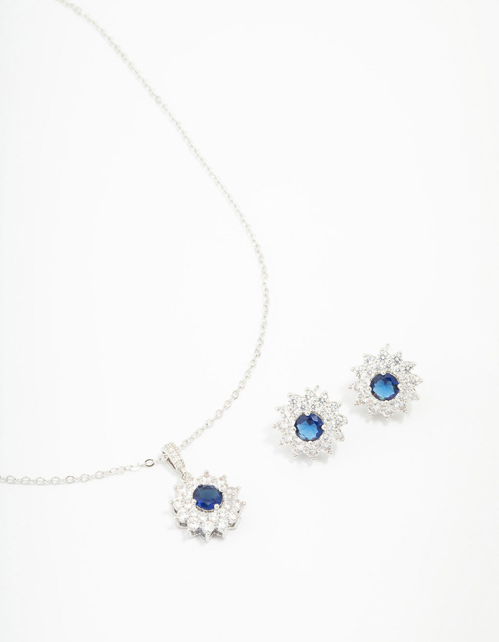 Silver Cubic Zirconia Daisy Sapphire Jewellery Set