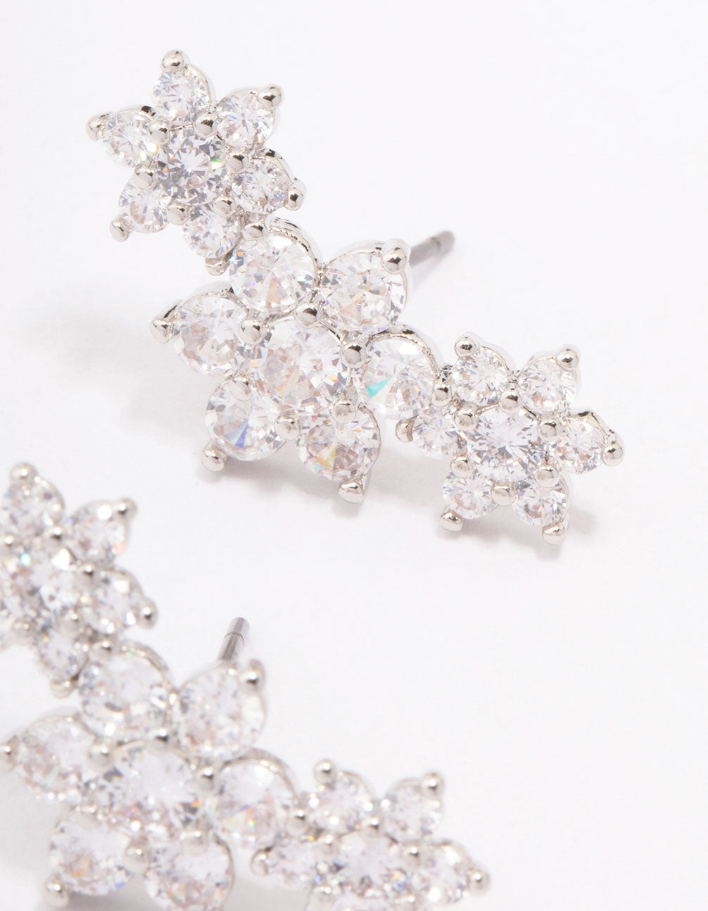 For an eye-catching addition to your stack, style these silver-toned stud earrings. These lovely studs feature a cascading, floral design encrusted with cubic zirconia crystals for added sparkle.