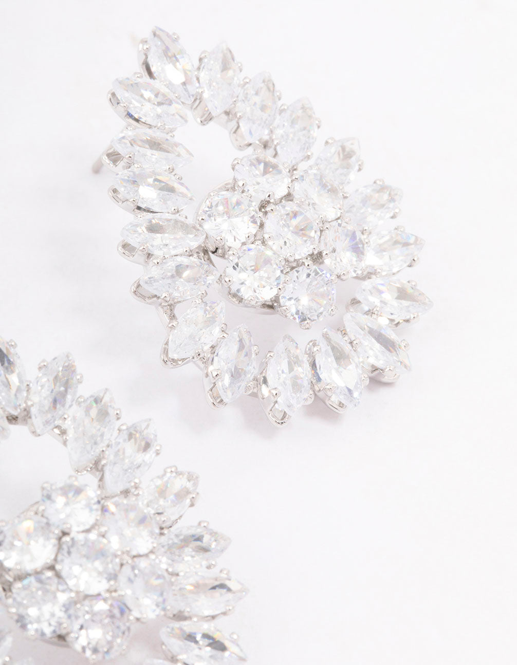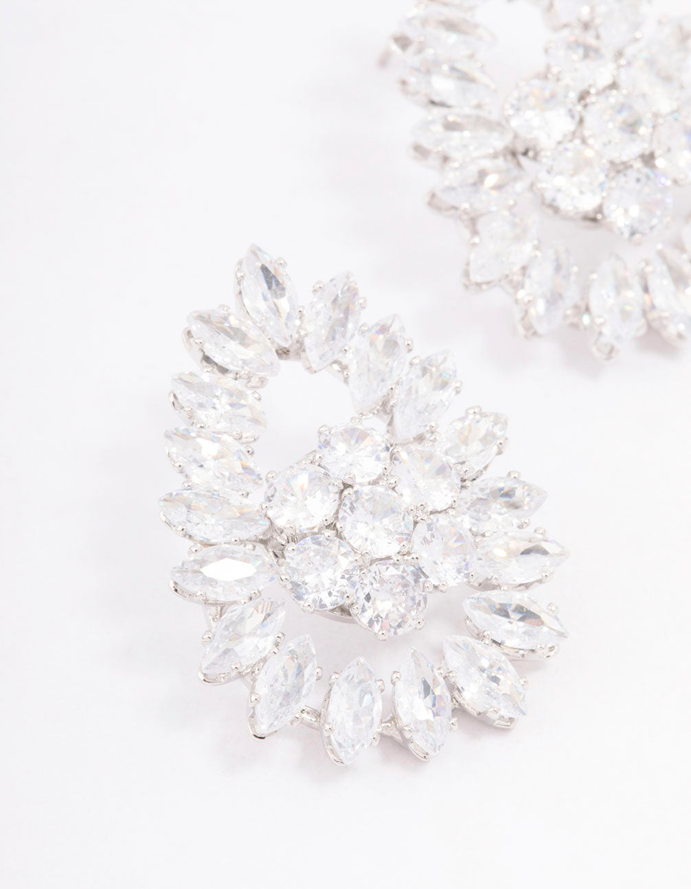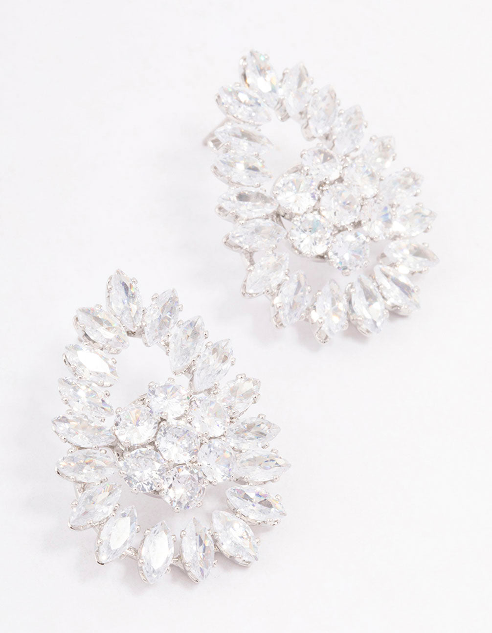Silver Cubic Zirconia Statement Oval Stud Earrings