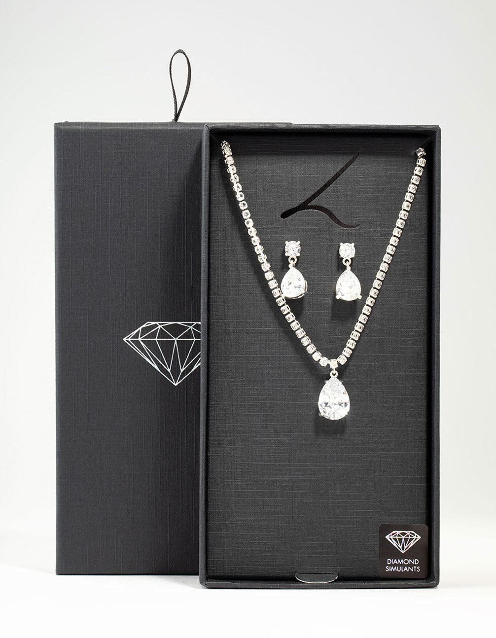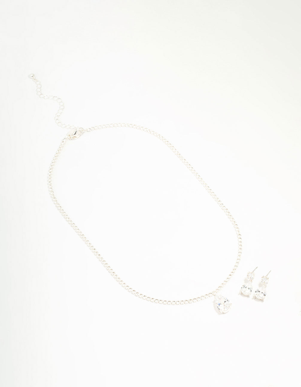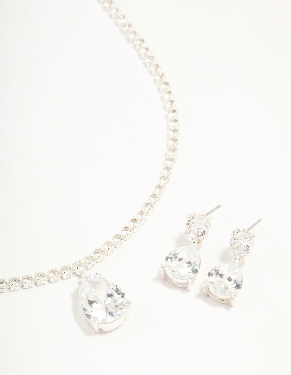 Silver Cubic Zirconia Tennis Necklace & Earring Set