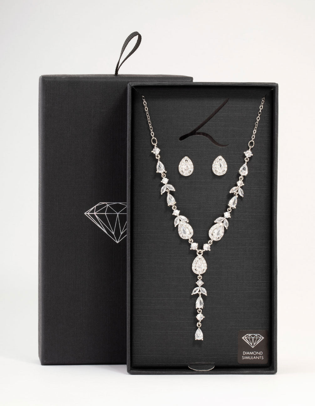 Silver Cubic Zirconia Vine Necklace & Earrings Set