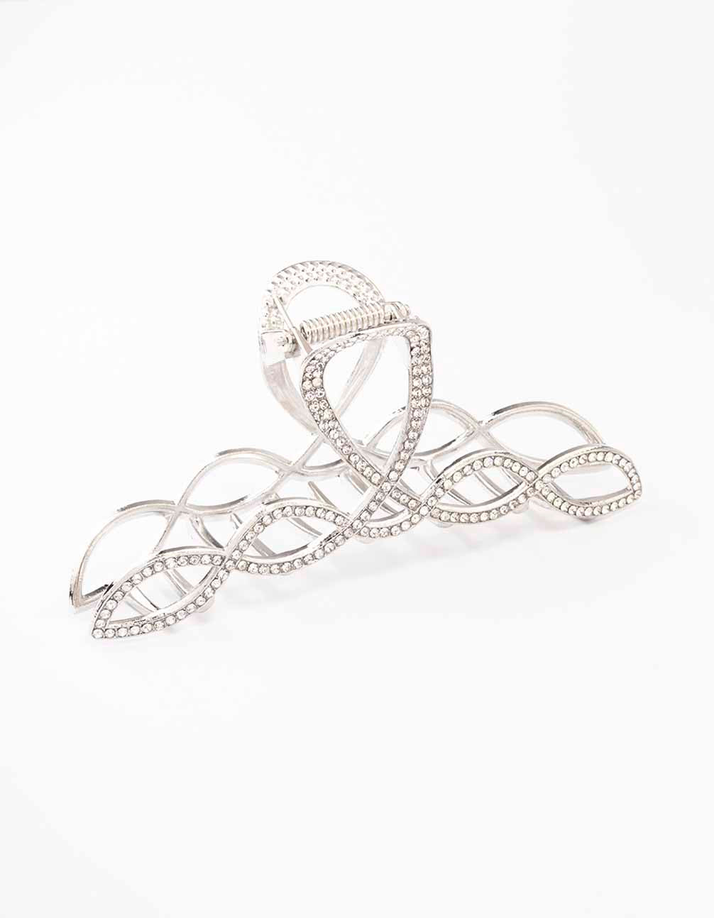 Silver Diamante Braided Twisted Hair Claw Clip