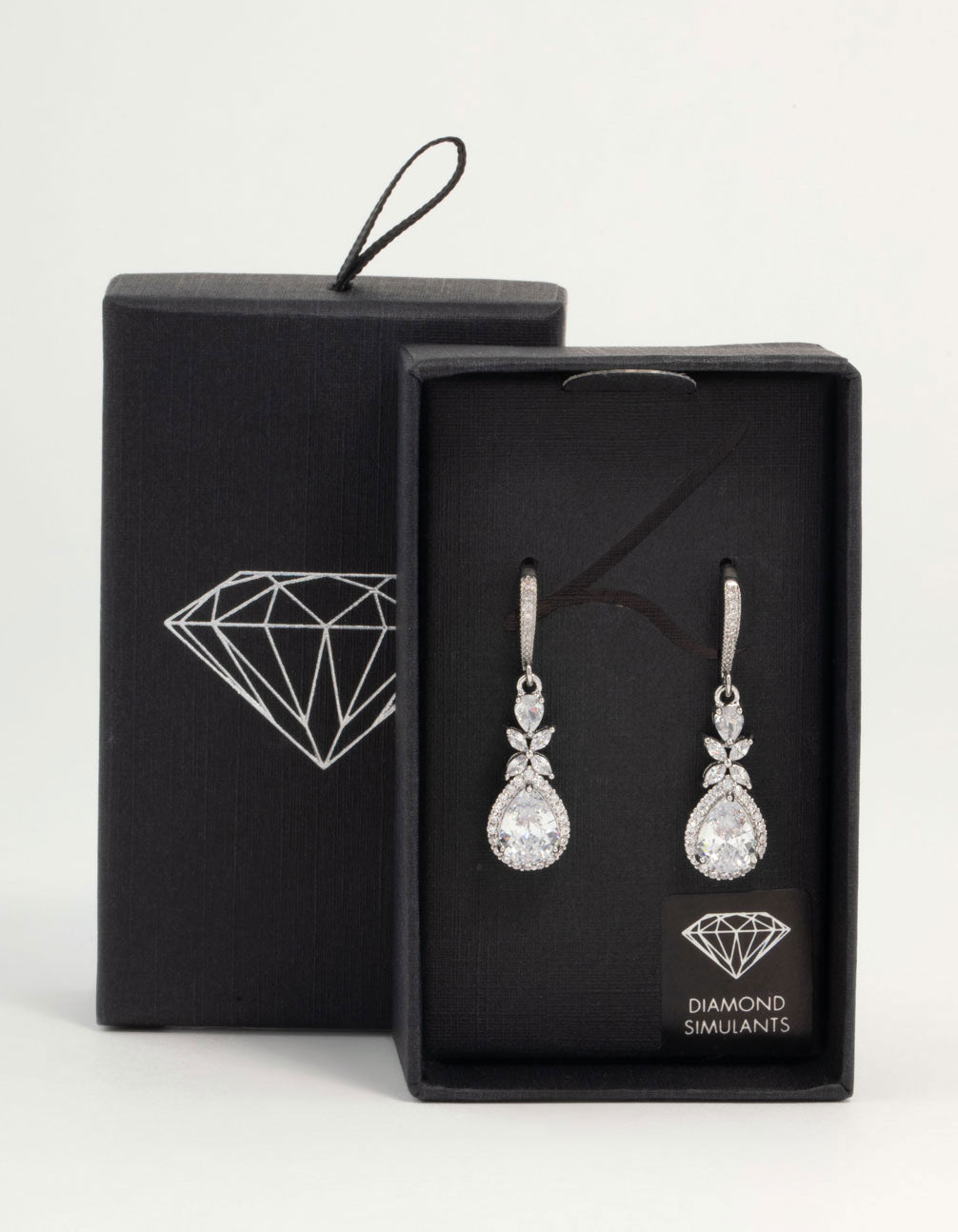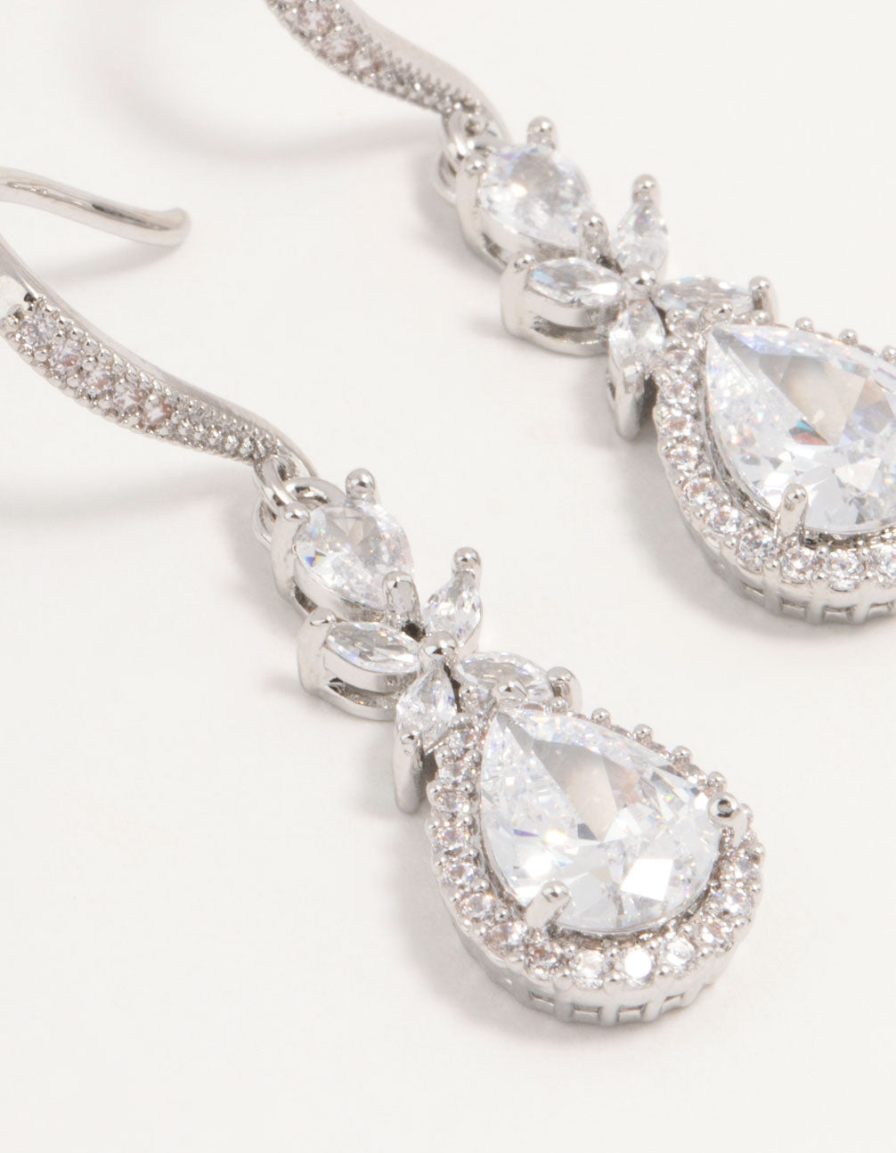 Upgrade your style with these stunning hook earrings. They showcase an eye-catching halo and a pear-shaped diamante drop design, adding a chic finishing touch to any look.