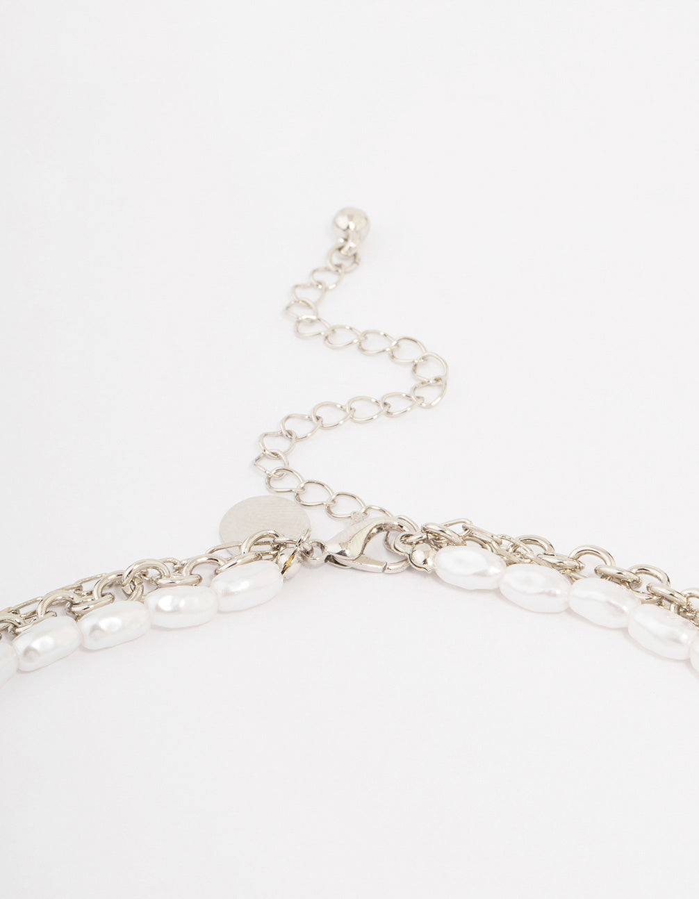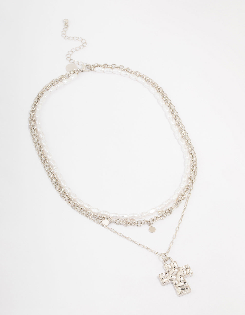 Add interest to you neckline with this silver-toned, layered necklace. Adorned with a cross motif for a classic finish.