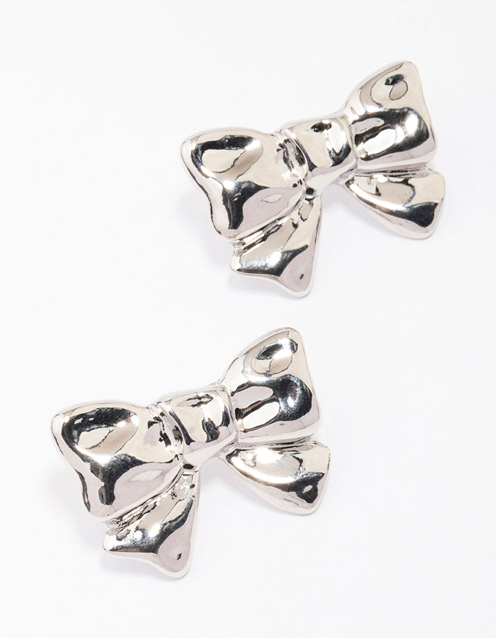 Silver Molten Bow Stud Earrings