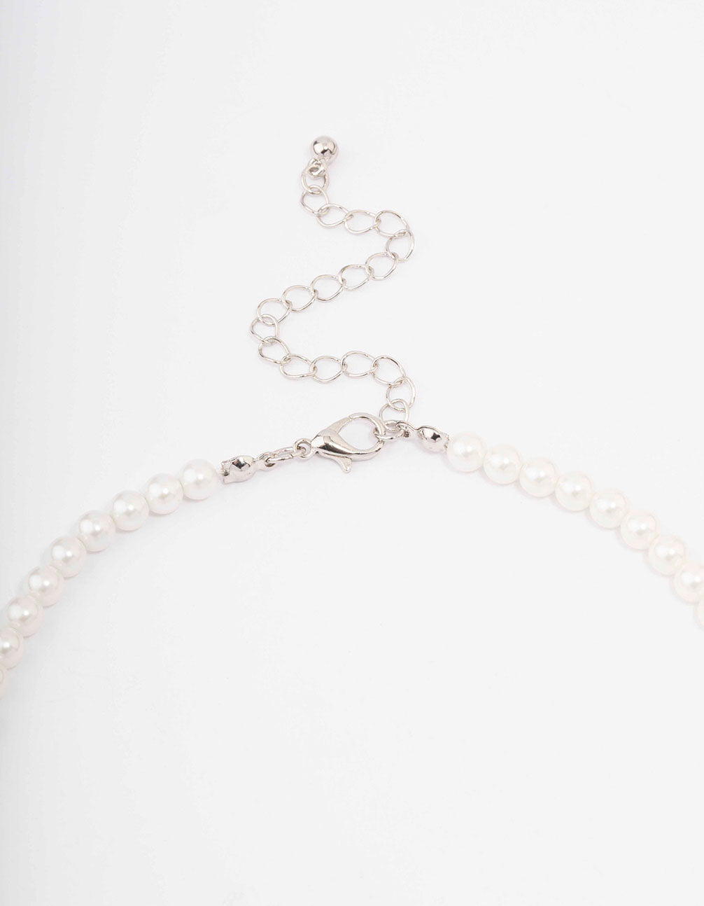 Silver Pearl & Solitaire Diamante Pendant Necklace Silver Pearl & Solitaire Diamante Pendant Necklace Silver Pearl & Solitaire Diamante Pendant Necklace