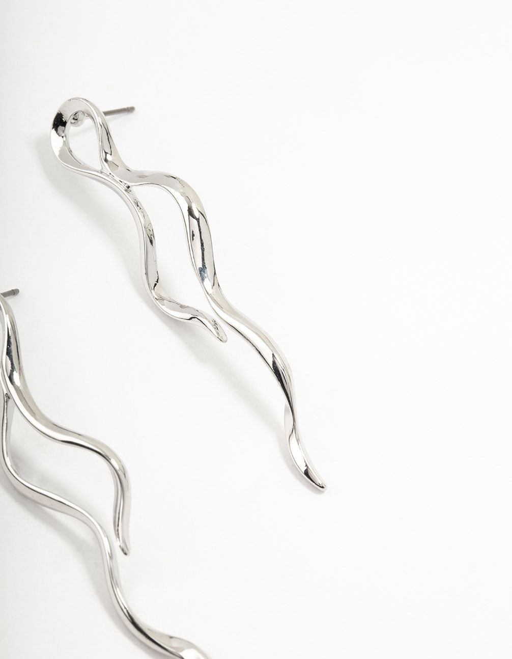 Add edge with Silver Snake Wiggle Drop Earrings. These shimmering silver beauties feature a sleek, cascading design that exudes sophisticated shine. Crafted from silver, they offer effortless glamour for any occasion.