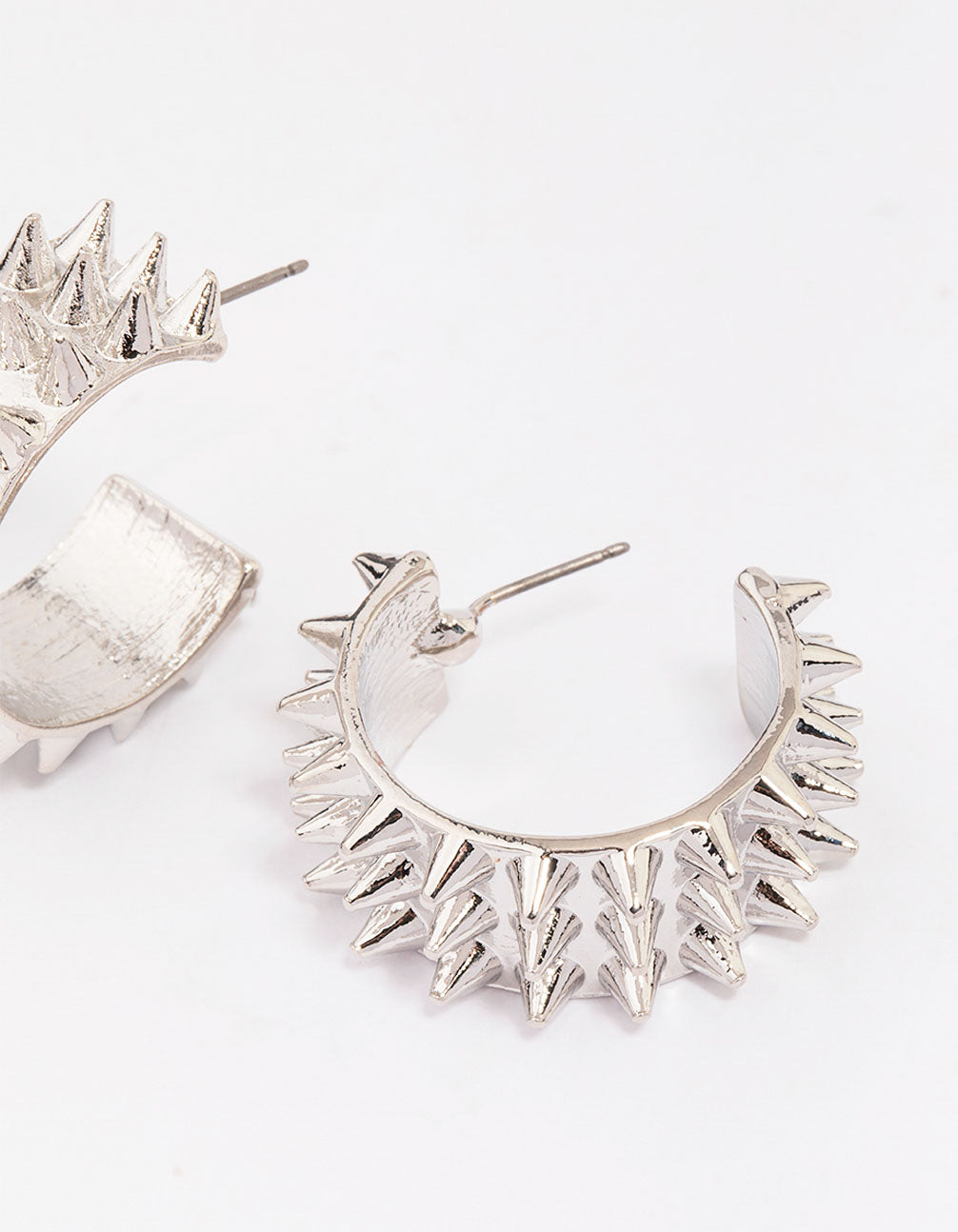 For an impactful finish to your look, style these silver-toned hoop earrings. These statement hoops feature a chunky silhouette and trio of pointed spikes. Perfect for adding an alternative edge to any outfit.