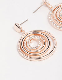 Add warmth to your look with these unique, rose gold drop earrings. These lovely statement earrings feature a layered, circular design. Perfect for adding dimension to your stack!