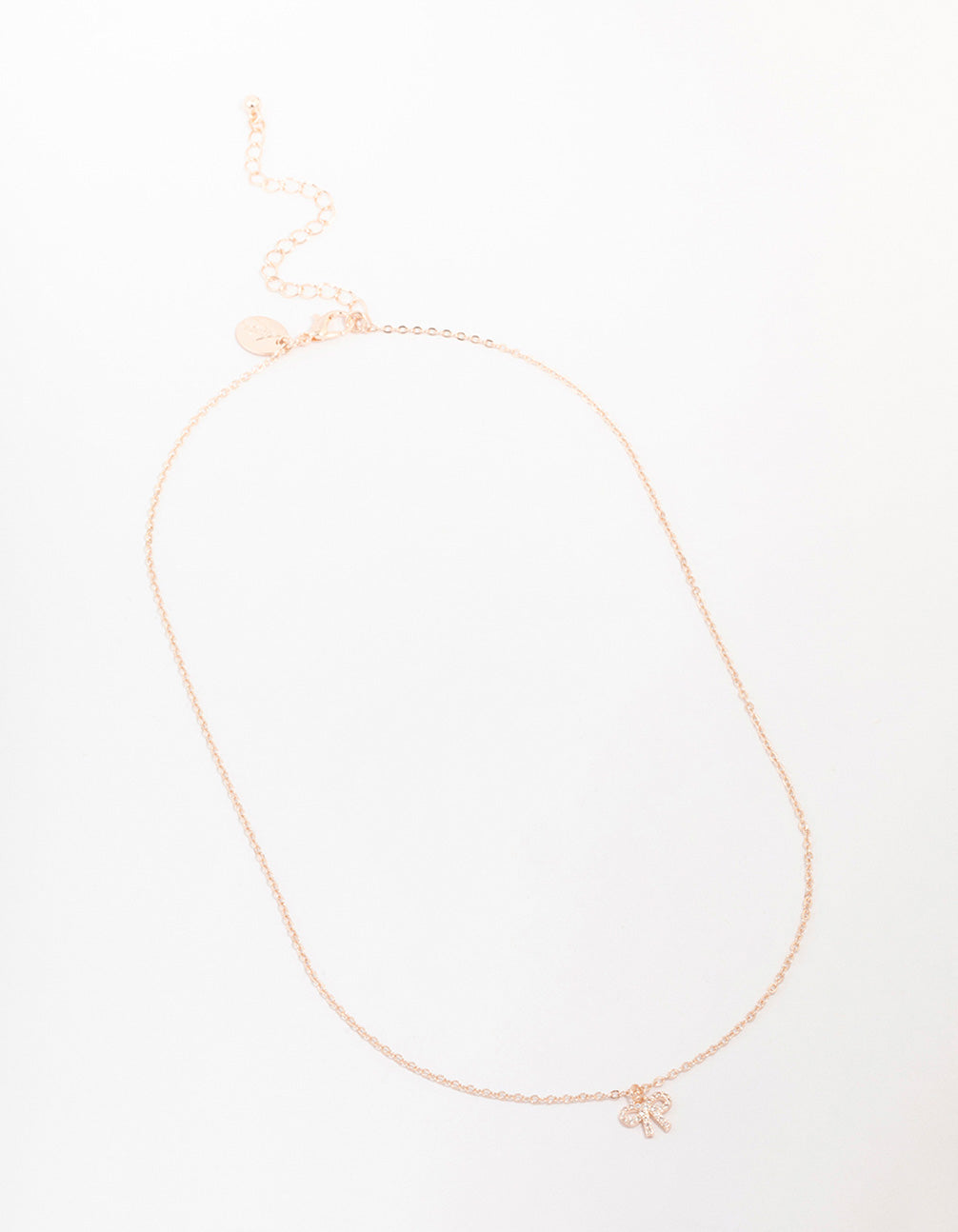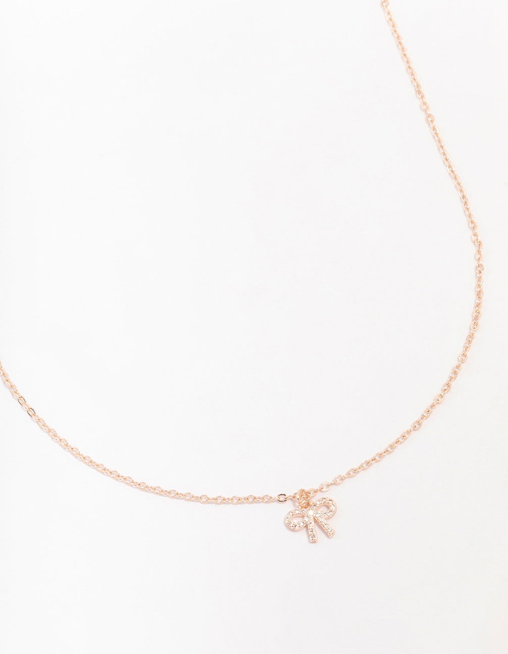 Rose Gold Cubic Zirconia Diamante Bow Pendant Necklace