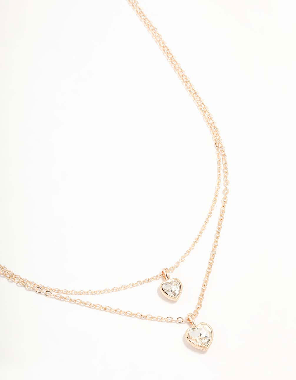 Dazzle with this Rose Gold Diamante Heart Layered Necklace. With its captivating heart pendant, it's perfect for layering or wearing solo for that head-turning glamour. A must-have accessory for any outfit.