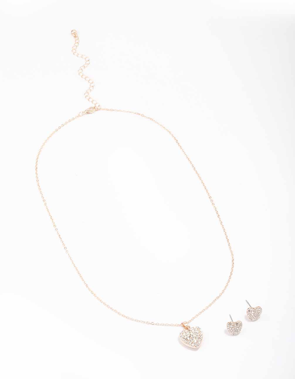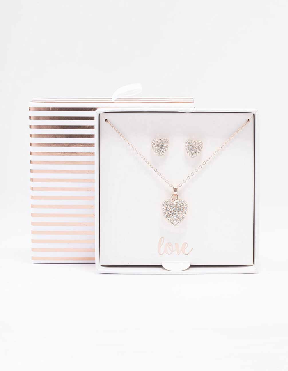 Rose Gold Diamante Heart Necklace & Stud Earring Set