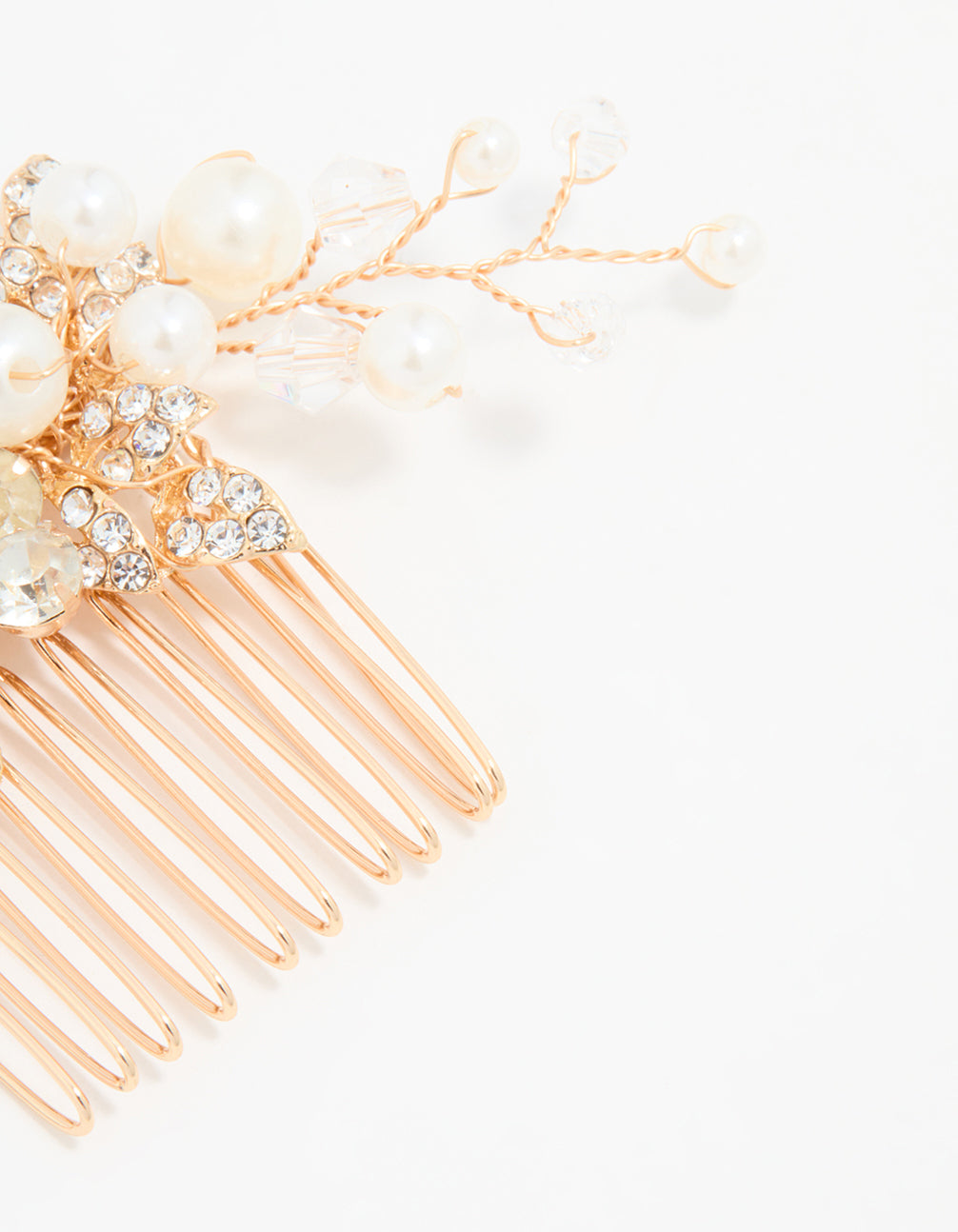 Rose Gold Diamante & Pearl Leaf Hair Comb Rose Gold Diamante & Pearl Leaf Hair Comb Rose Gold Diamante & Pearl Leaf Hair Comb