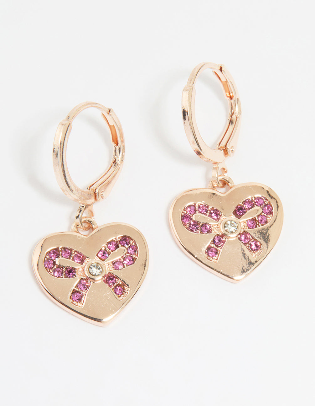 Rose Gold Heart Diamante Bow Huggie Earrings