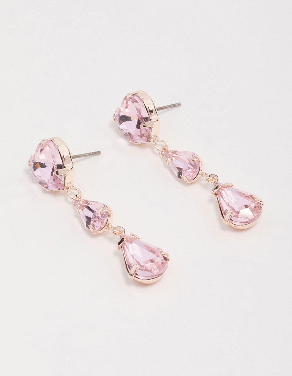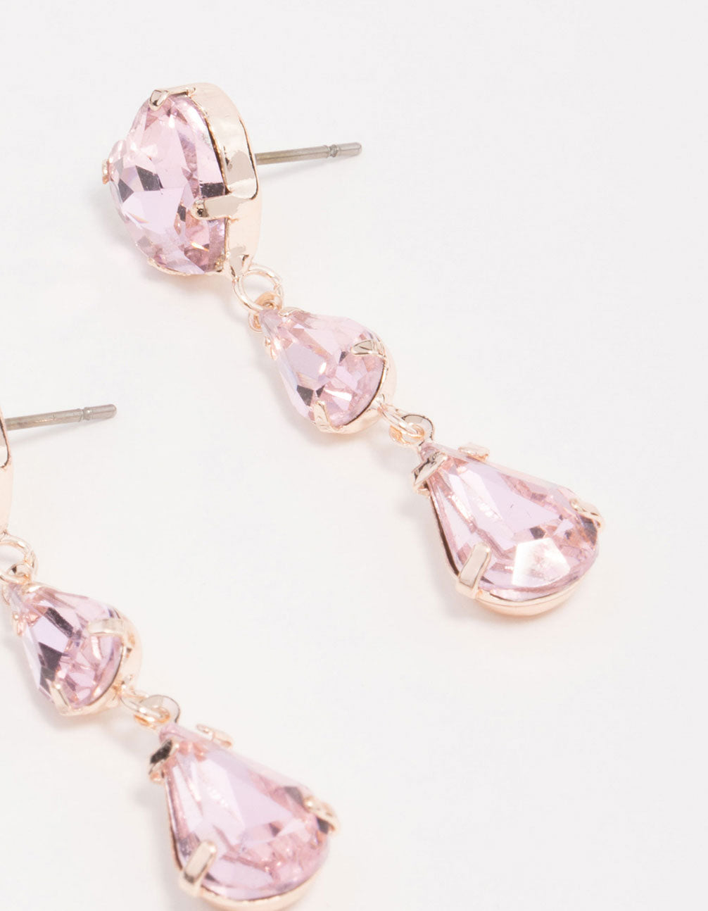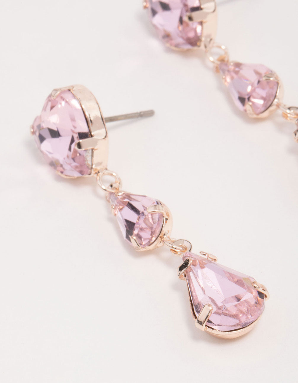 For a glamorous addition to your stack, style these lovely, rose gold drop earrings. These unique dangle earrings feature a rose gold setting and cascading design of lilac crystals.