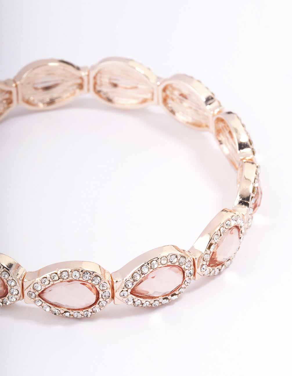 Rose Gold Marquise & Pink Diamante Stretch Bracelet