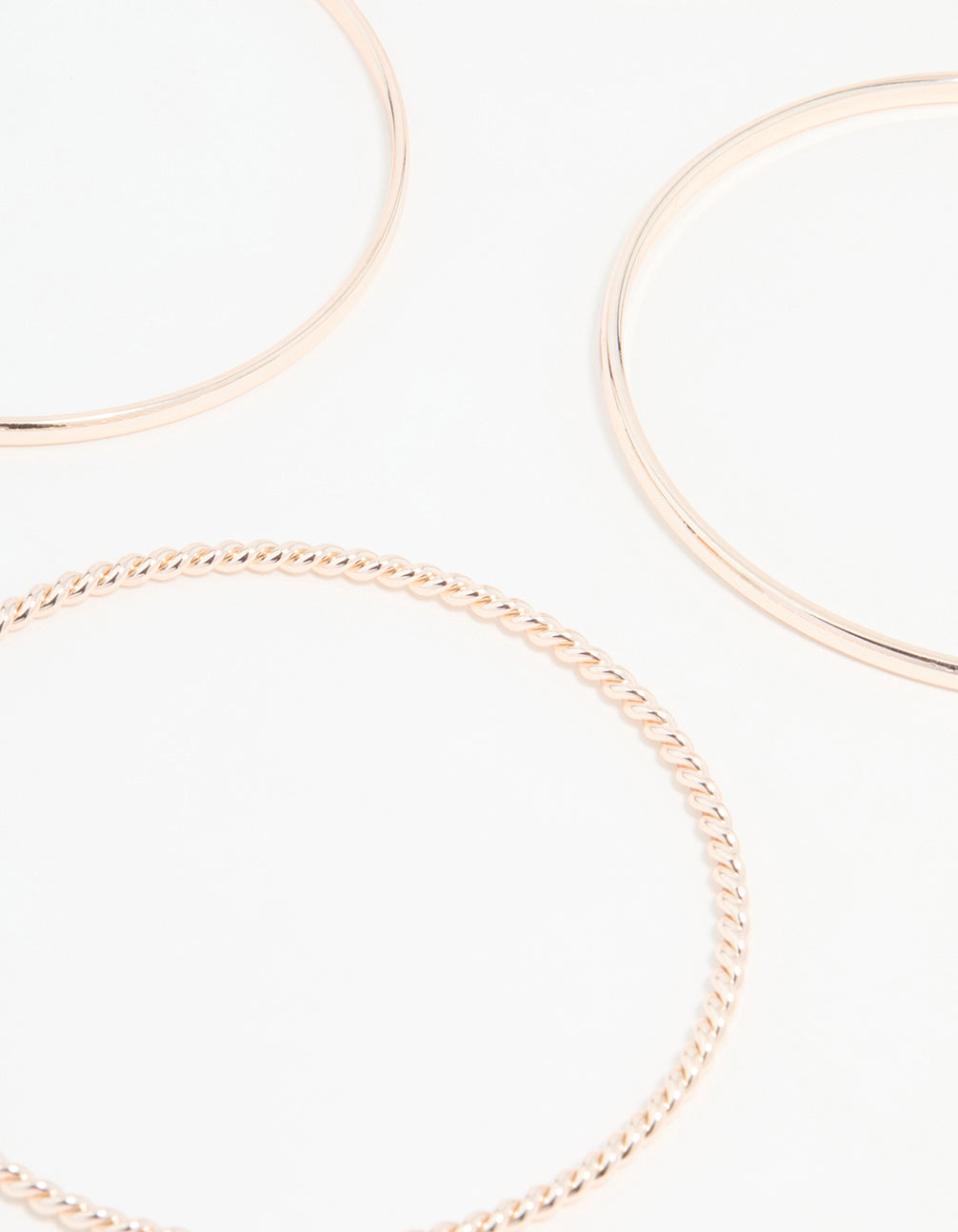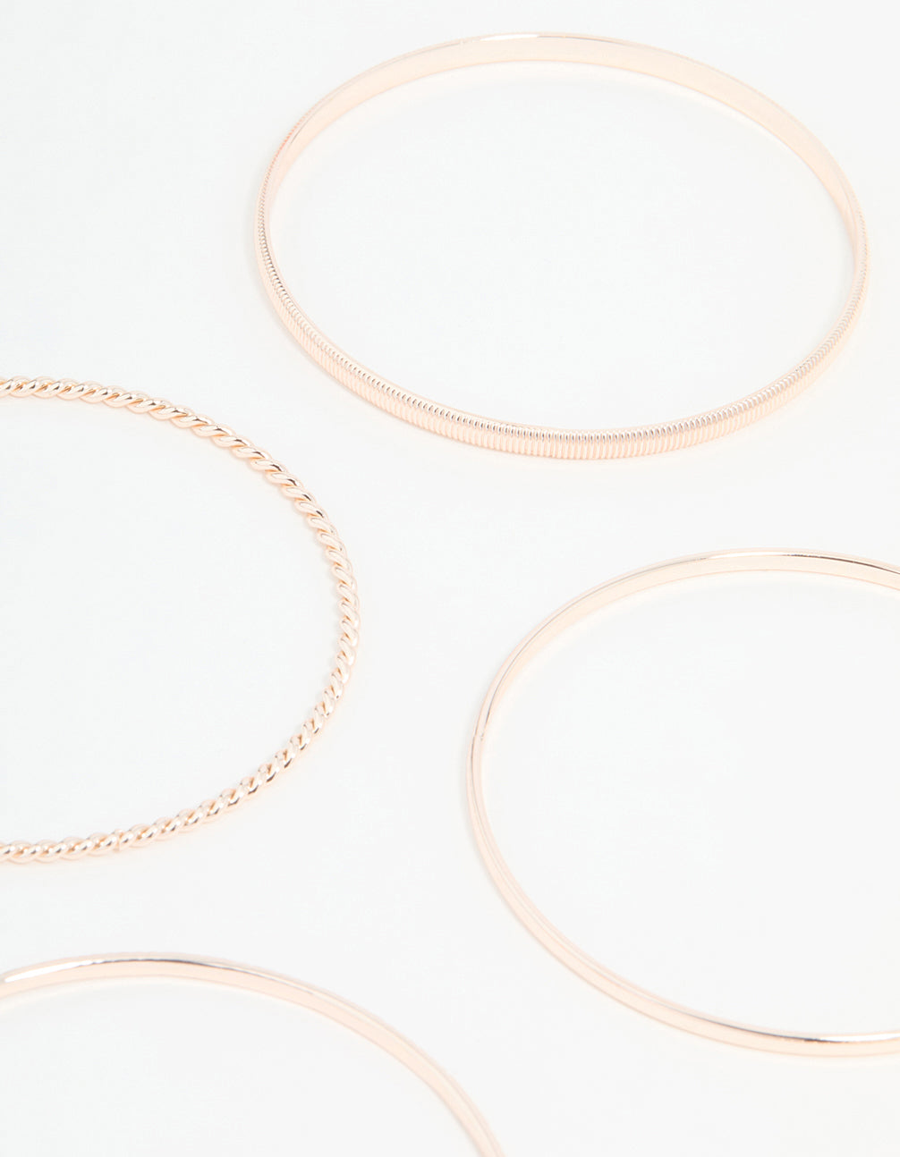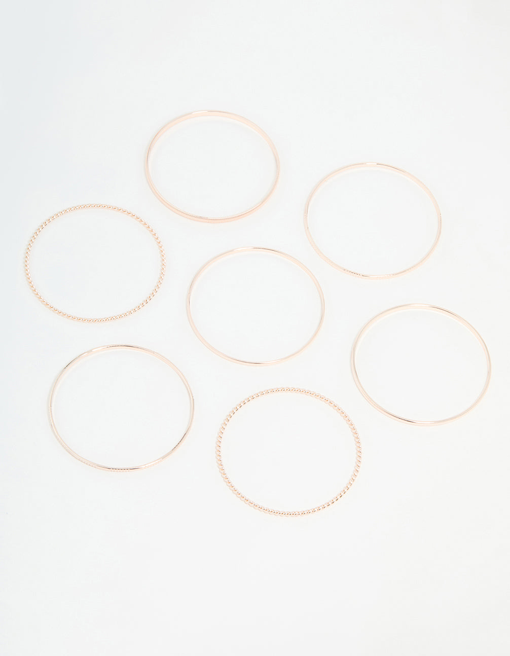 Stack up the style with this Rose Gold Mixed Textured Bangles Pack! This dreamy set of jewellery features five rose gold bangles, each with unique textures for a chic, layered look. Perfect for dressing up casual jeans and a tee or adding sparkle to an evening dress. Whether you're heading to brunch or a night out, these versatile bracelets are your ultimate go-to.