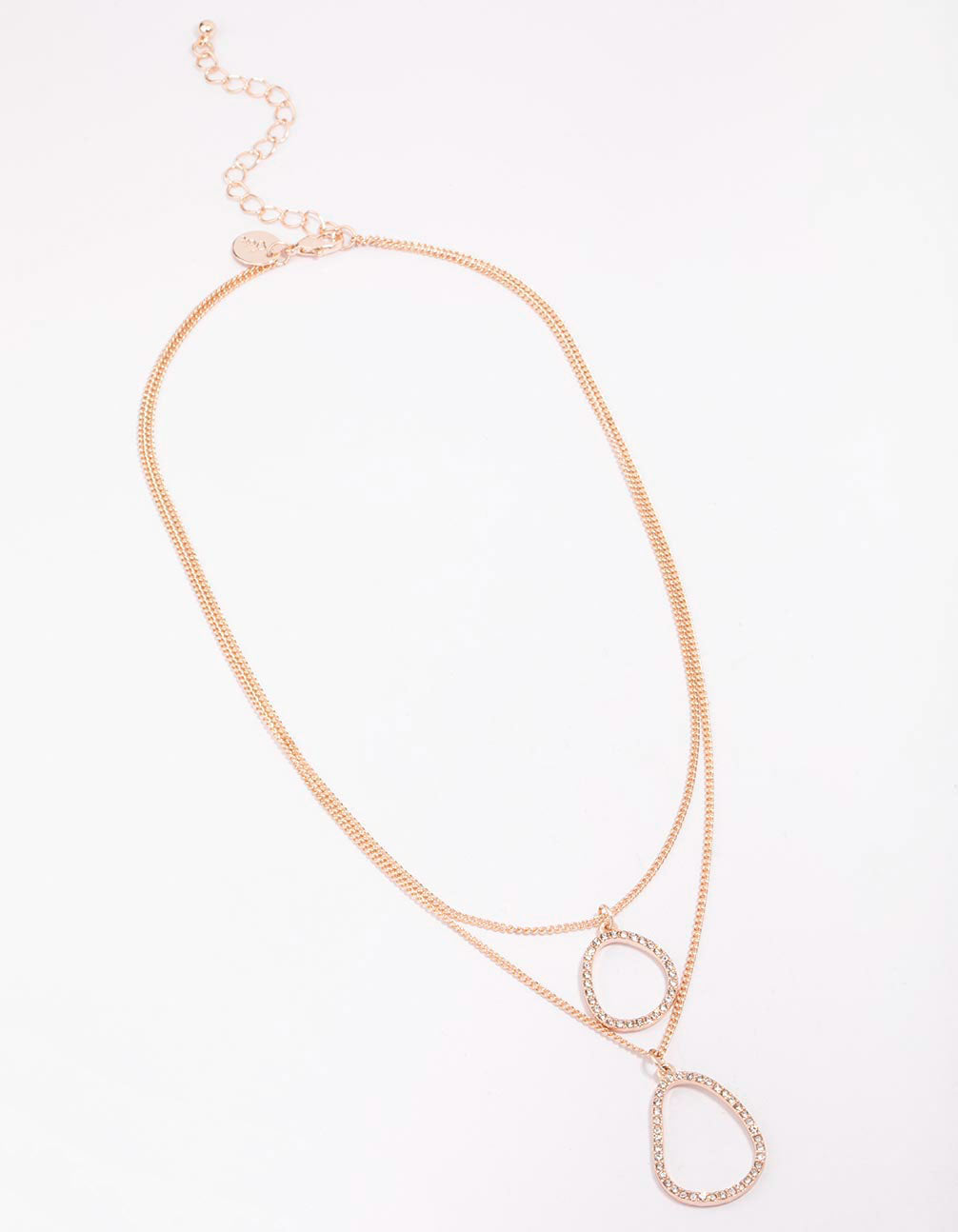 Add a touch of warmth to your look with this timeless rose gold necklace. This layered necklace features two rows, adorned with oval-shaped pendants for a modern touch.