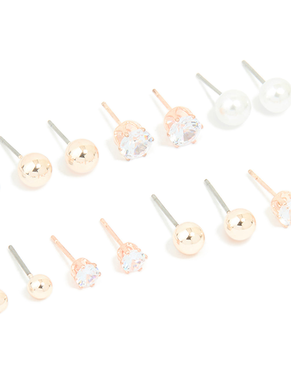 Rose Gold & Pearl Mixed Basic Stud Earrings 8-Pack