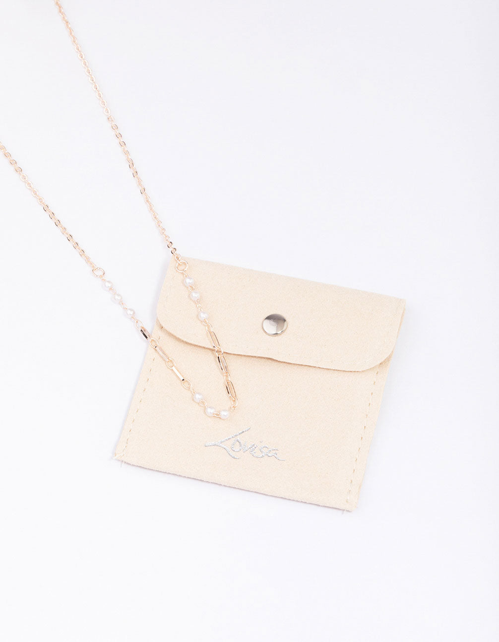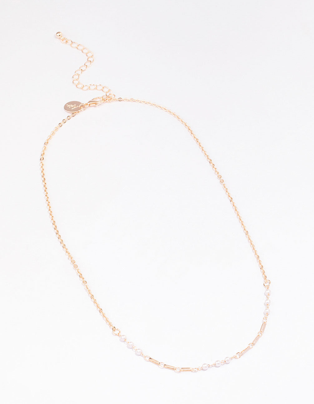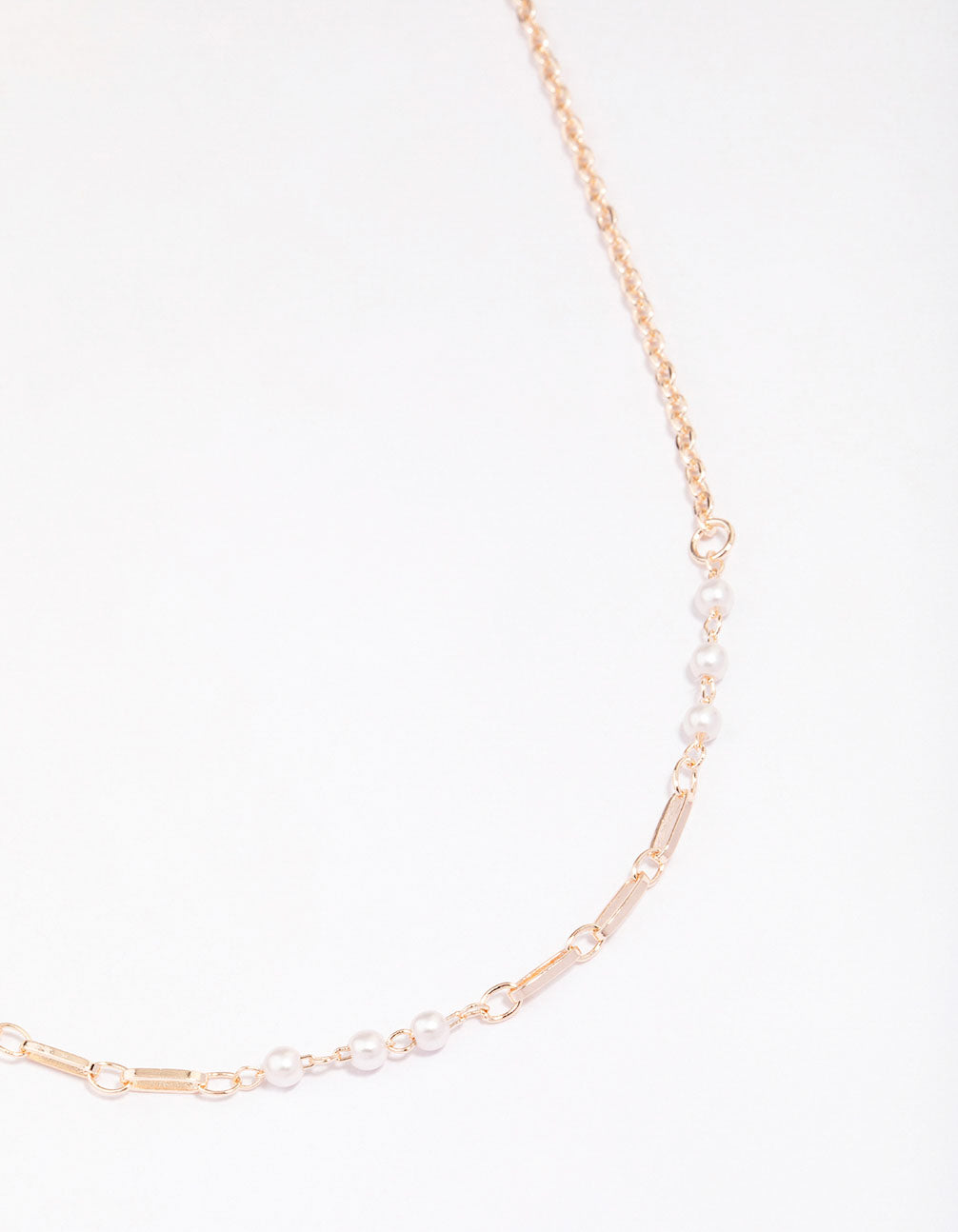 Embellish your stack with this gorgeous, rose gold necklace. This chain necklace features a paperclip-inspired chain, adorned with strands of pearls for an elevated touch.