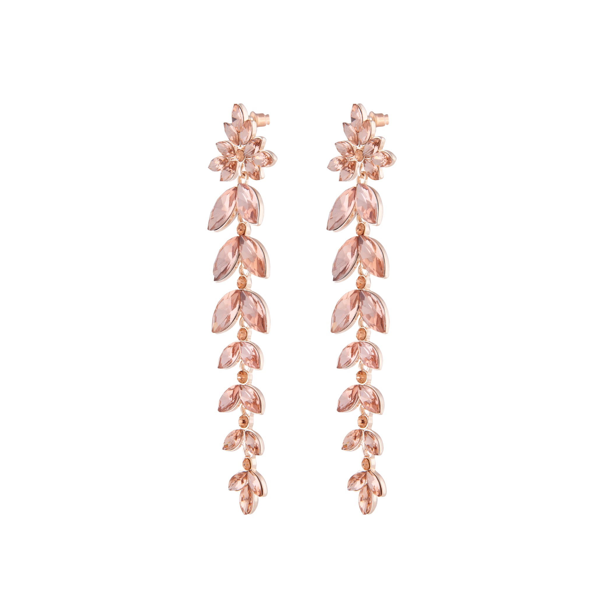 These large gem-drop earrings come in a rose gold tone and add some serious drama to any ensemble.