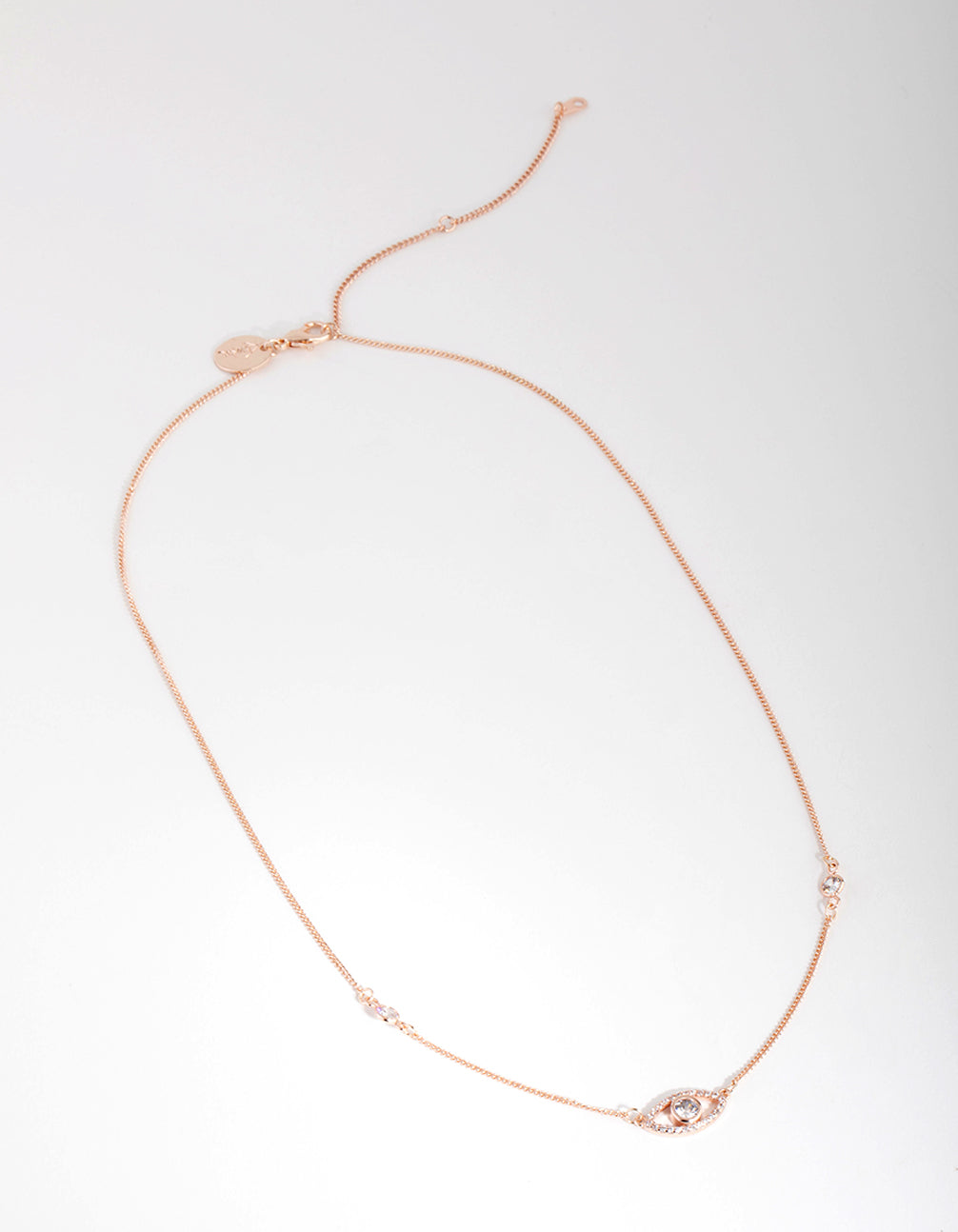 Rose Gold Plated Cubic Zirconia Evil Eye Necklace