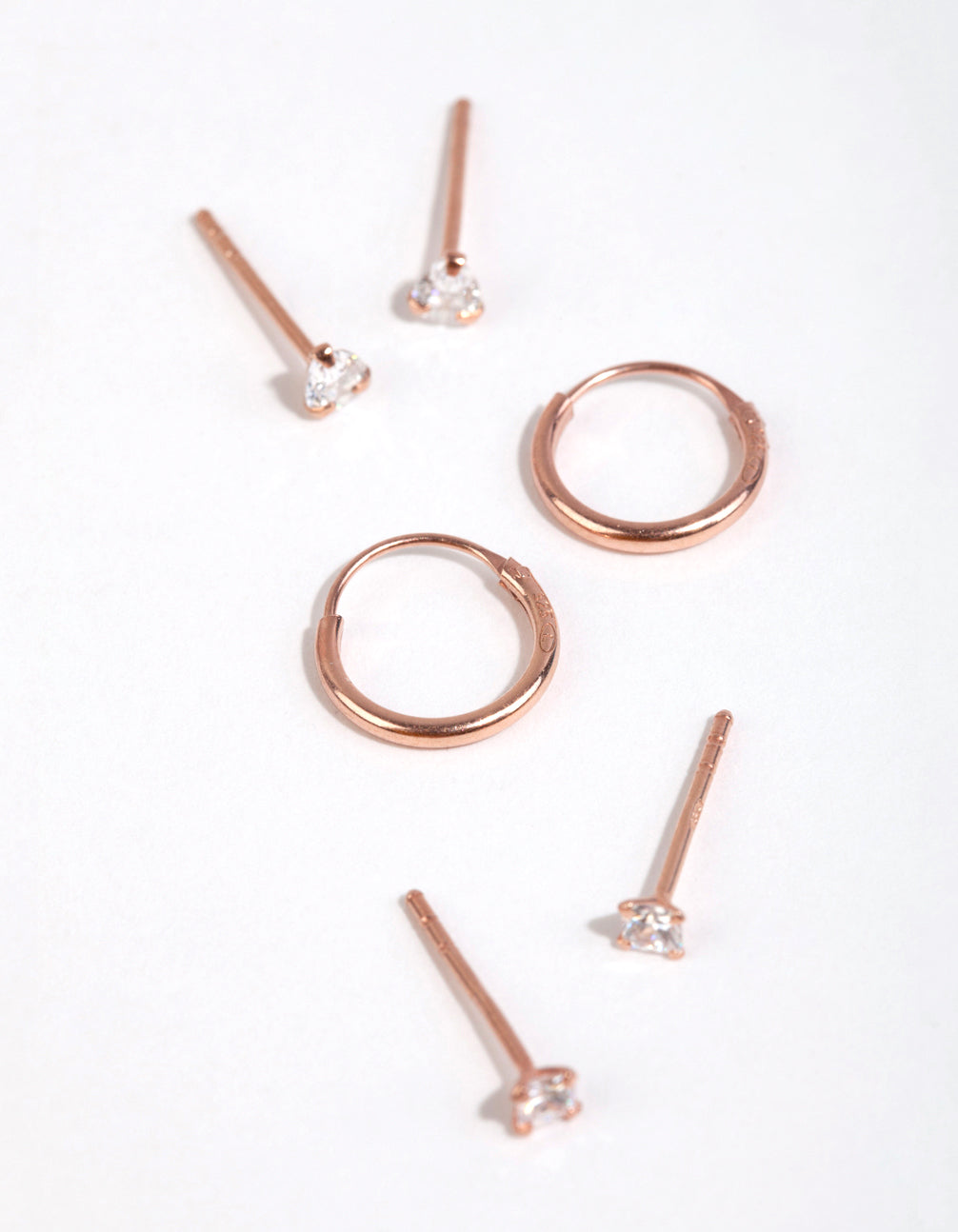 Invest in quality with genuine rose-gold-plated 925 sterling silver. This stud and hoop pack features three different designs. Perfect for layering!