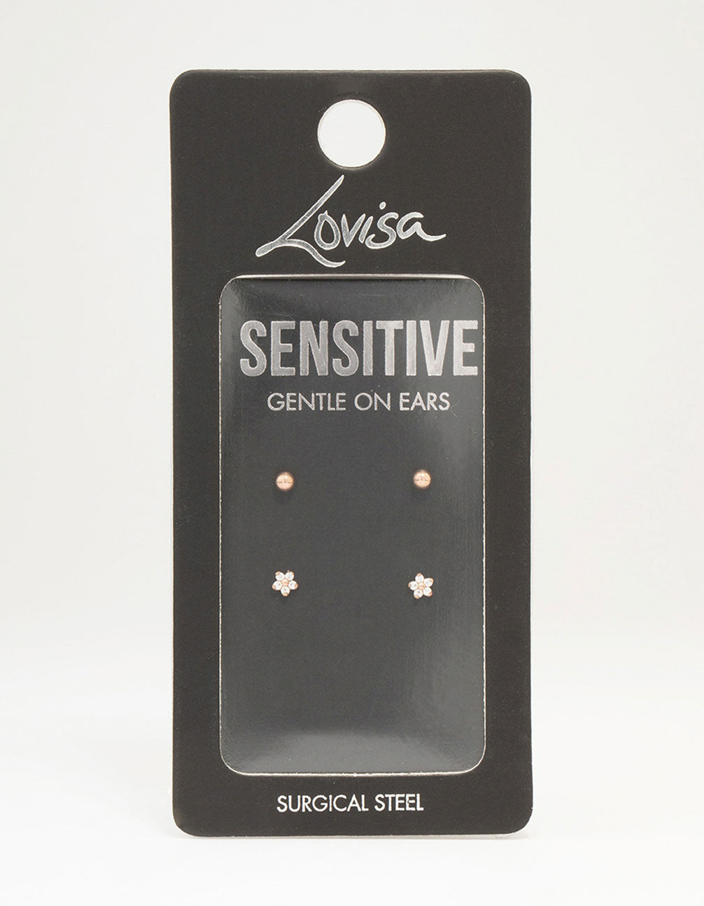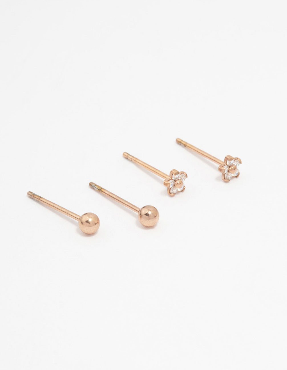 Rose Gold Plated Surgical Steel Ball & Flower Stud Earring Pack