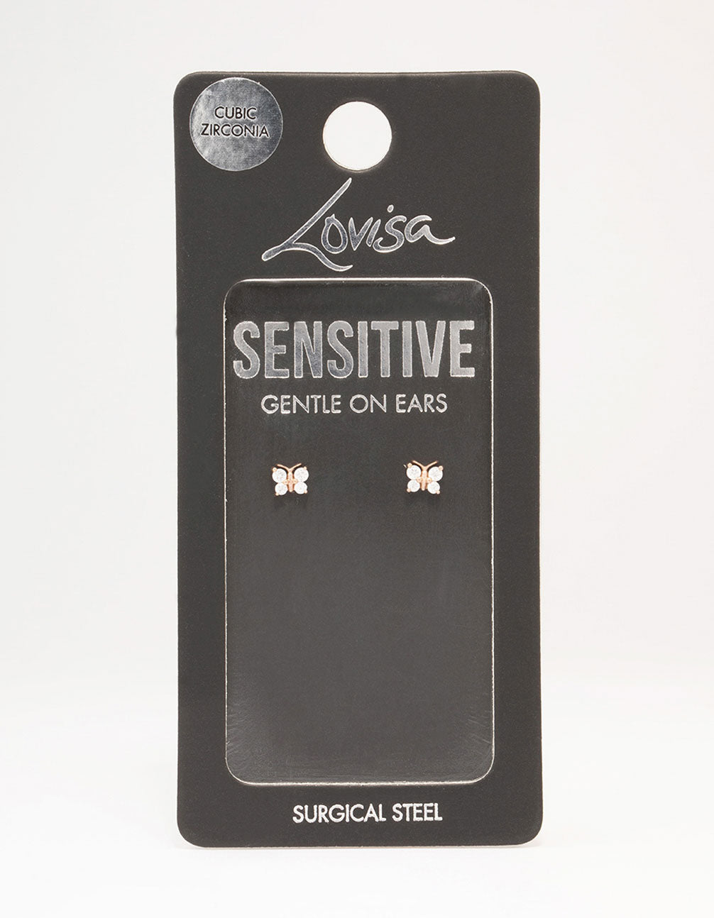 Rose Gold Plated Surgical Steel Butterfly Stud Earrings