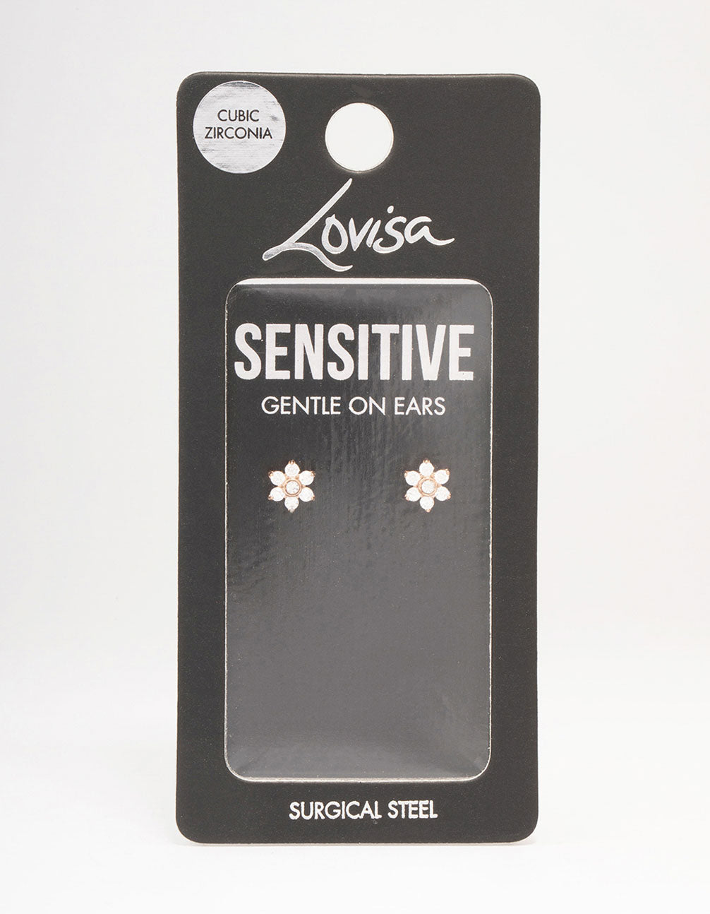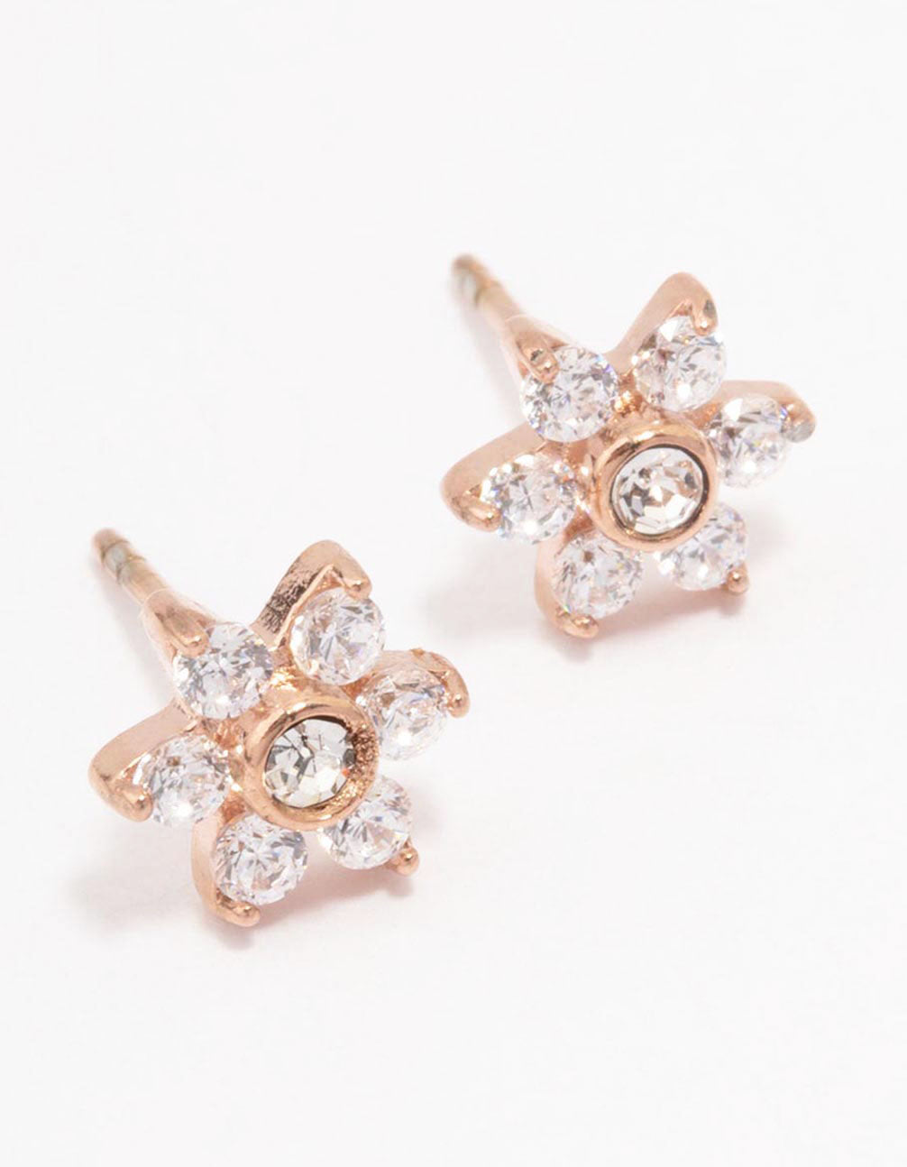 Rose Gold Plated Surgical Steel Cubic Zirconia Flower Stud Earrings