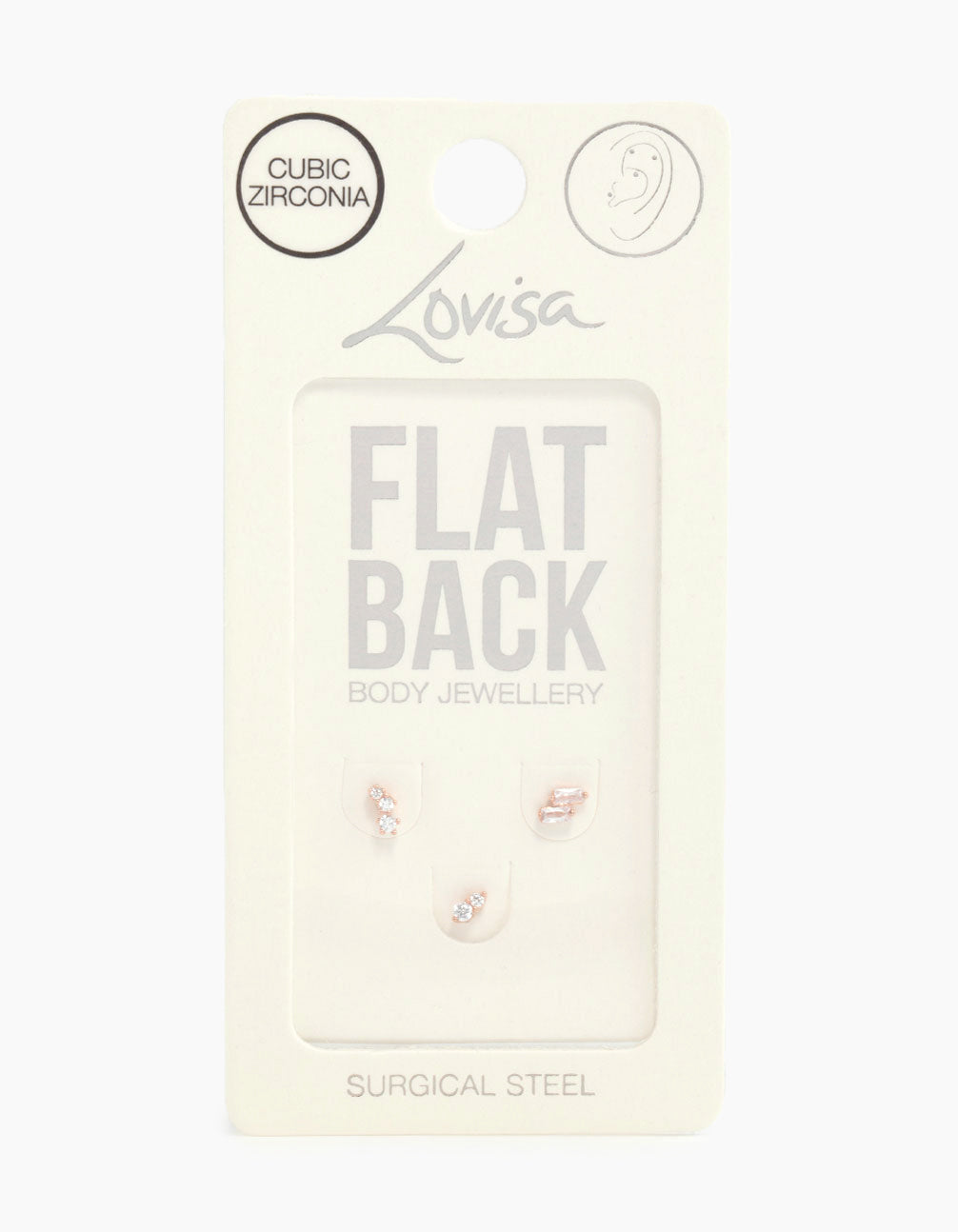 Rose Gold Plated Surgical Steel Pink Cubic Zirconia Flat Backs 3-Pack