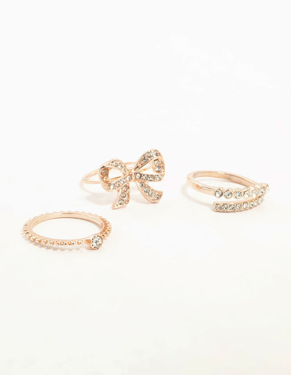 Rose Gold Precious Bow Ring 3-Pack