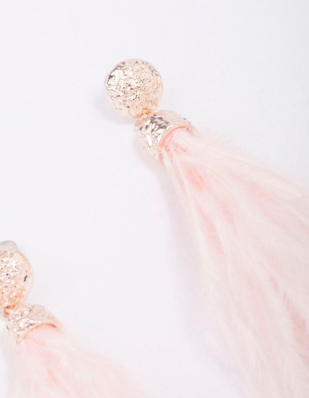 Rose Gold Textured Feather Drop Earrings