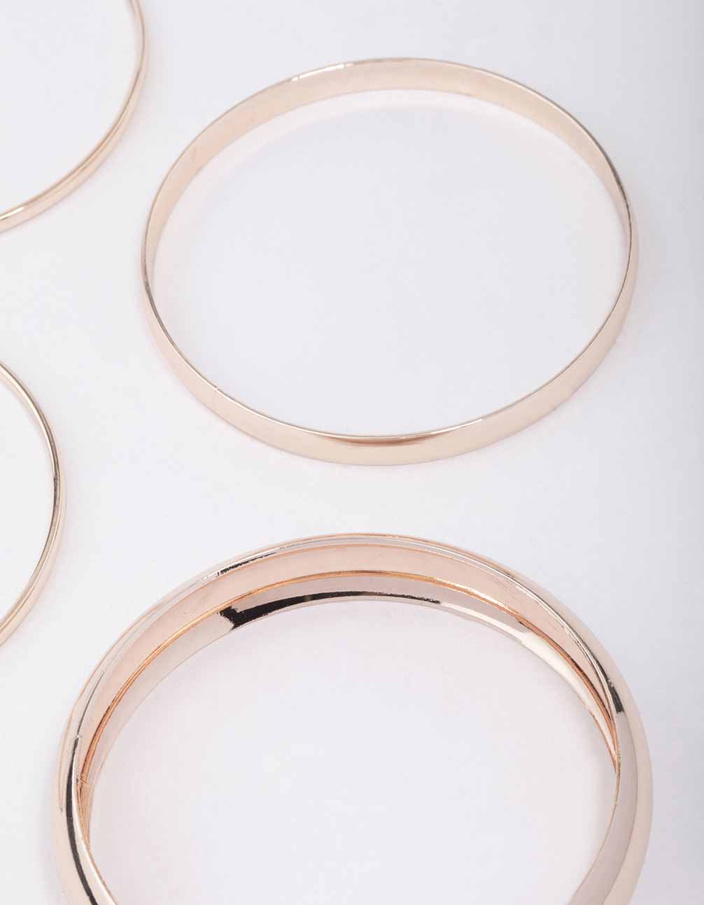 Add impact to your stack with this set of mixed, rose gold bangles.