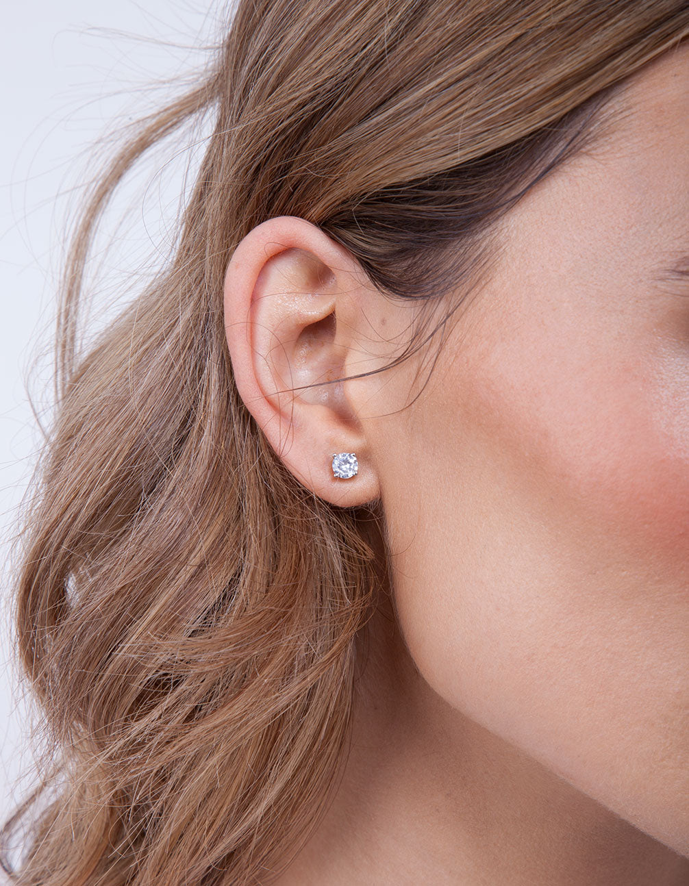 This necklace and earring set is made with diamond simulants, which are designed to be indistinguishable from a true diamond to the naked eye.